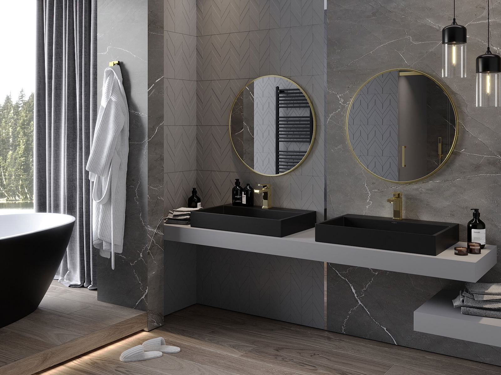 Огледало с алуминиева рамка е идеално съчетание поради своята издръжливост, естетика и модерен вид. Алуминият е лек, но в същото време здрав материал, устойчив на корозия, което го прави отличен избор, особено за помещения с повишена влажност.