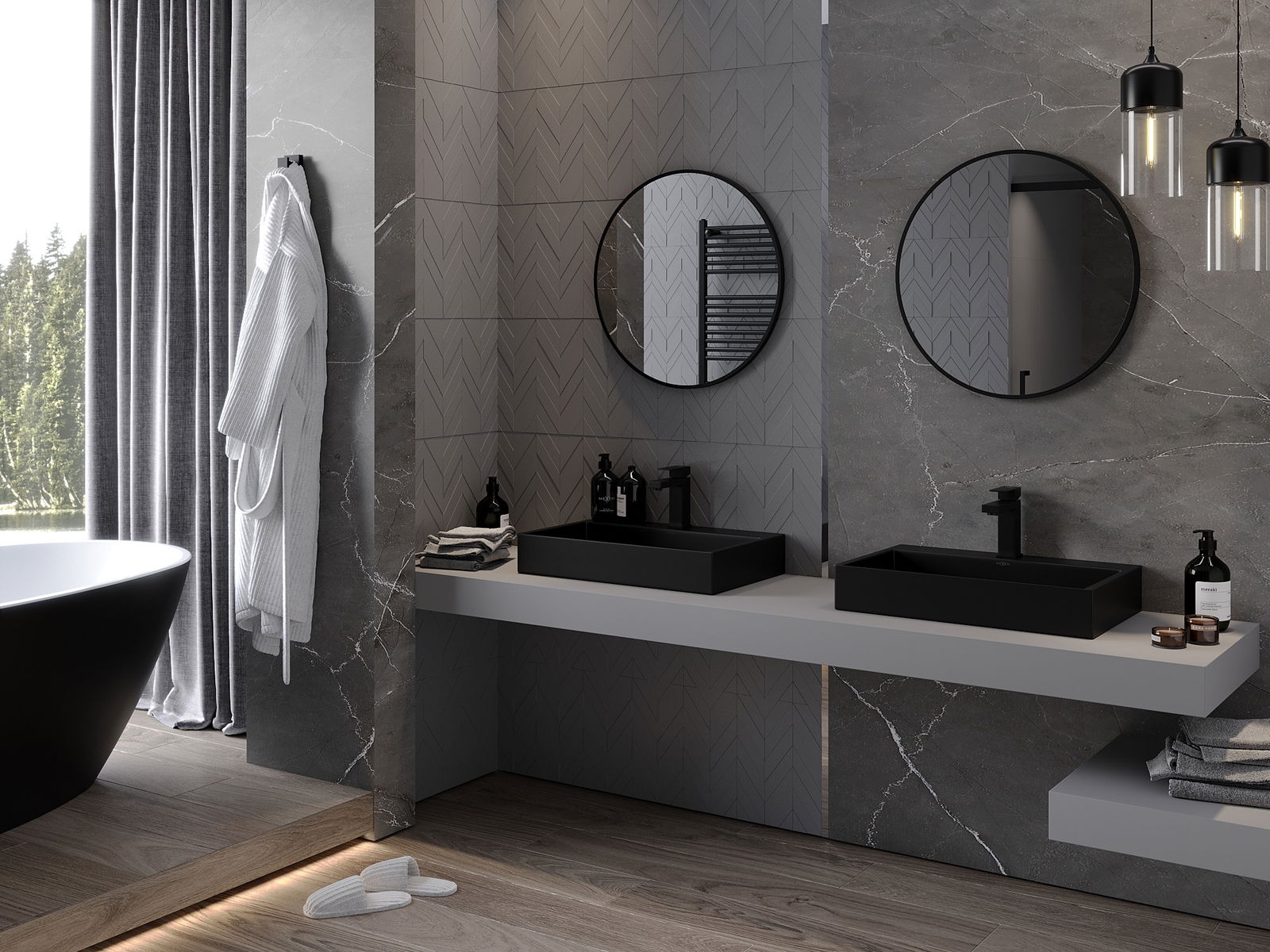 Изработено от суровини с най-високо качество, устойчиво на външни фактори като влага и пара, огледалото е отличен избор за помещения като банята. Използването на висококачествени материали прави огледалото издръжливо и устойчиво на надраскване.