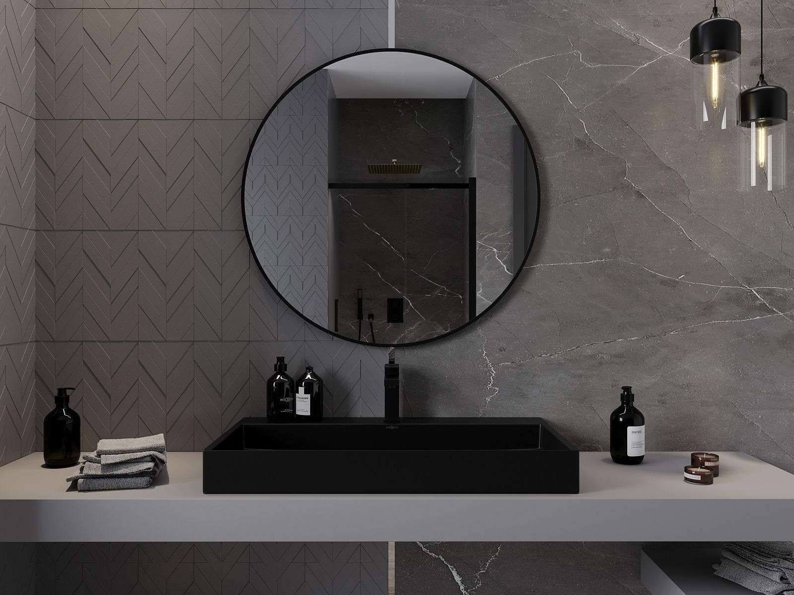 Mexen Loft кръгло огледало за баня 90 см, черна рамка - 9850-090-090-000-70