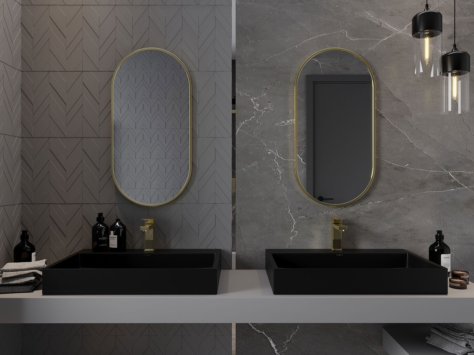 Mexen Loft овално огледало за баня 80 x 40 см, златна рамка - 9851-080-040-000-50