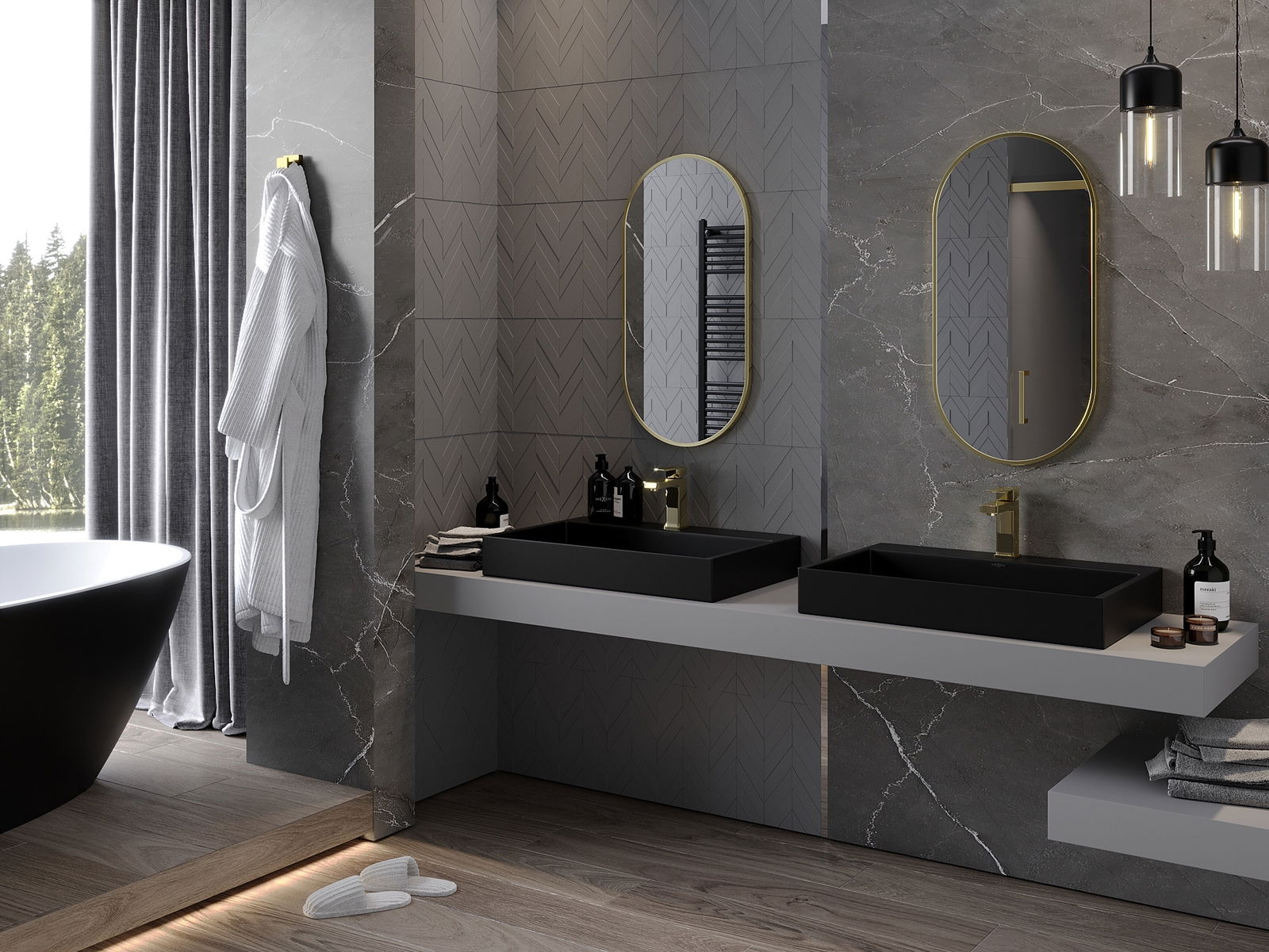Огледало с алуминиева рамка е идеално съчетание поради своята издръжливост, естетика и модерен вид. Алуминият е лек, но в същото време здрав материал, устойчив на корозия, което го прави отличен избор, особено за помещения с повишена влажност.