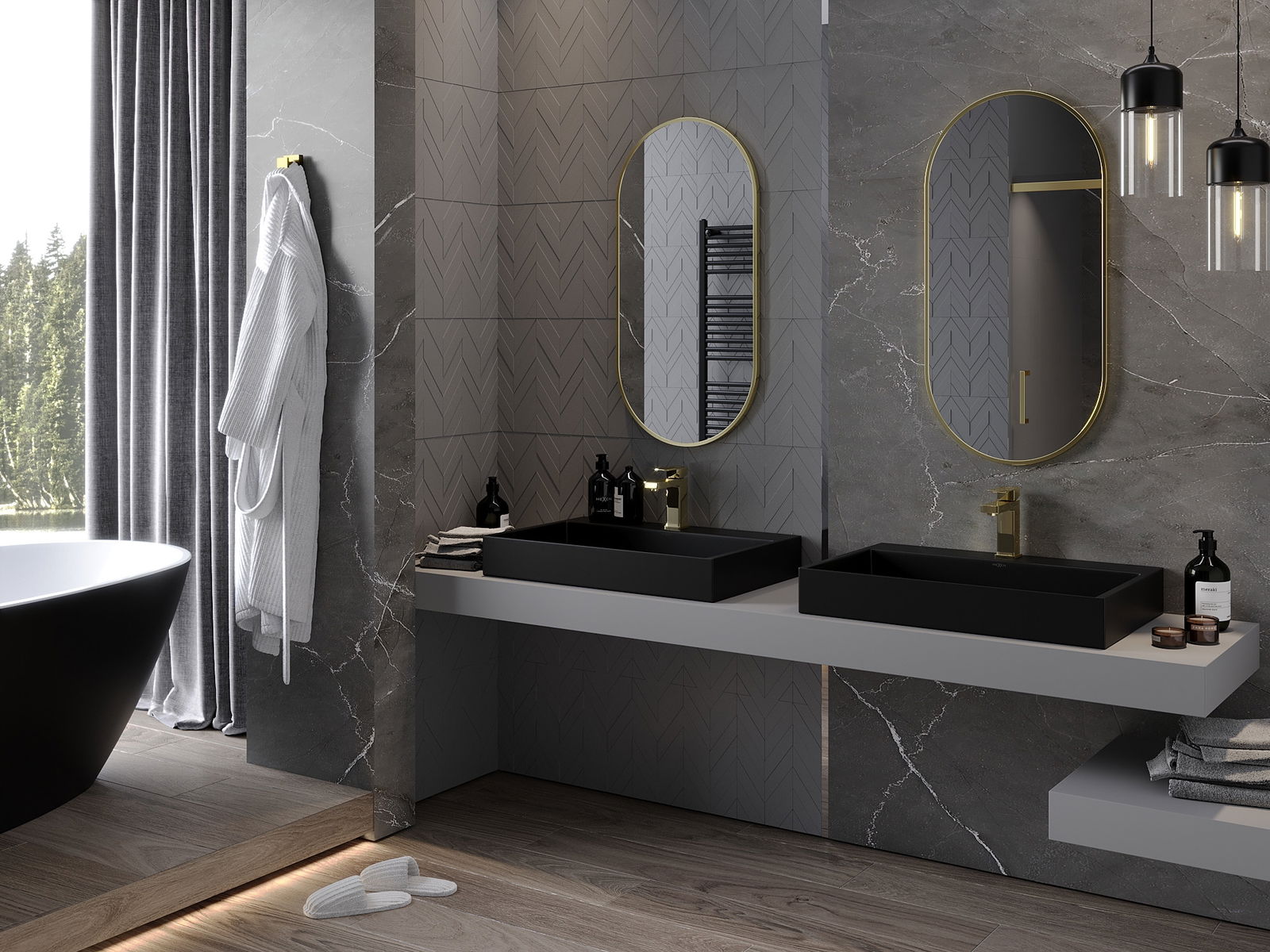 Изработено от суровини с най-високо качество, устойчиво на външни фактори като влага и пара, огледалото е отличен избор за помещения като банята. Използването на висококачествени материали прави огледалото издръжливо и устойчиво на надраскване.