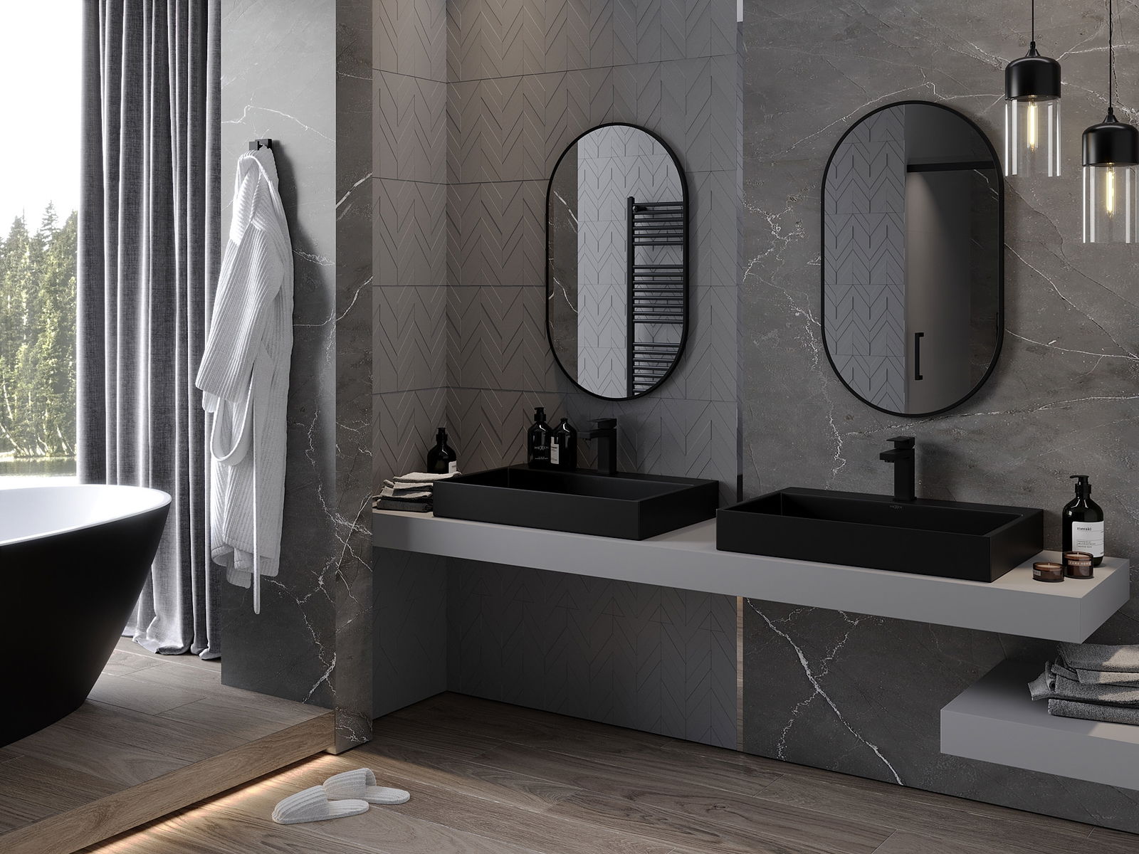 Mexen Loft овално огледало за баня 85 x 50 см, черна рамка - 9851-085-050-000-70