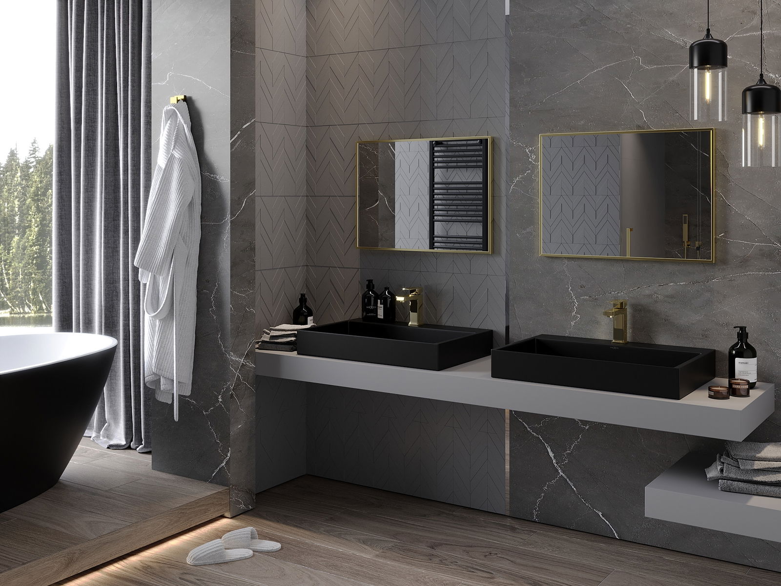 Огледало с алуминиева рамка е идеално съчетание поради своята издръжливост, естетика и модерен вид. Алуминият е лек, но в същото време здрав материал, устойчив на корозия, което го прави отличен избор, особено за помещения с повишена влажност.