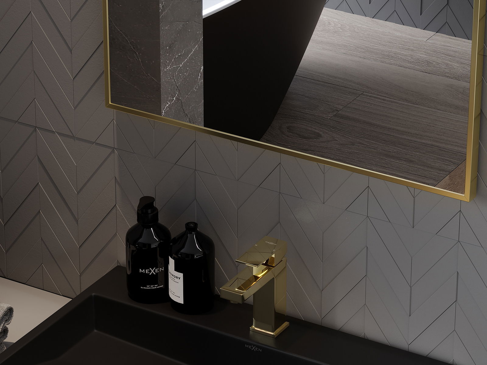 Mexen Loft правоъгълно огледало за баня 70 x 50 см, златна рамка - 9852-070-050-000-50