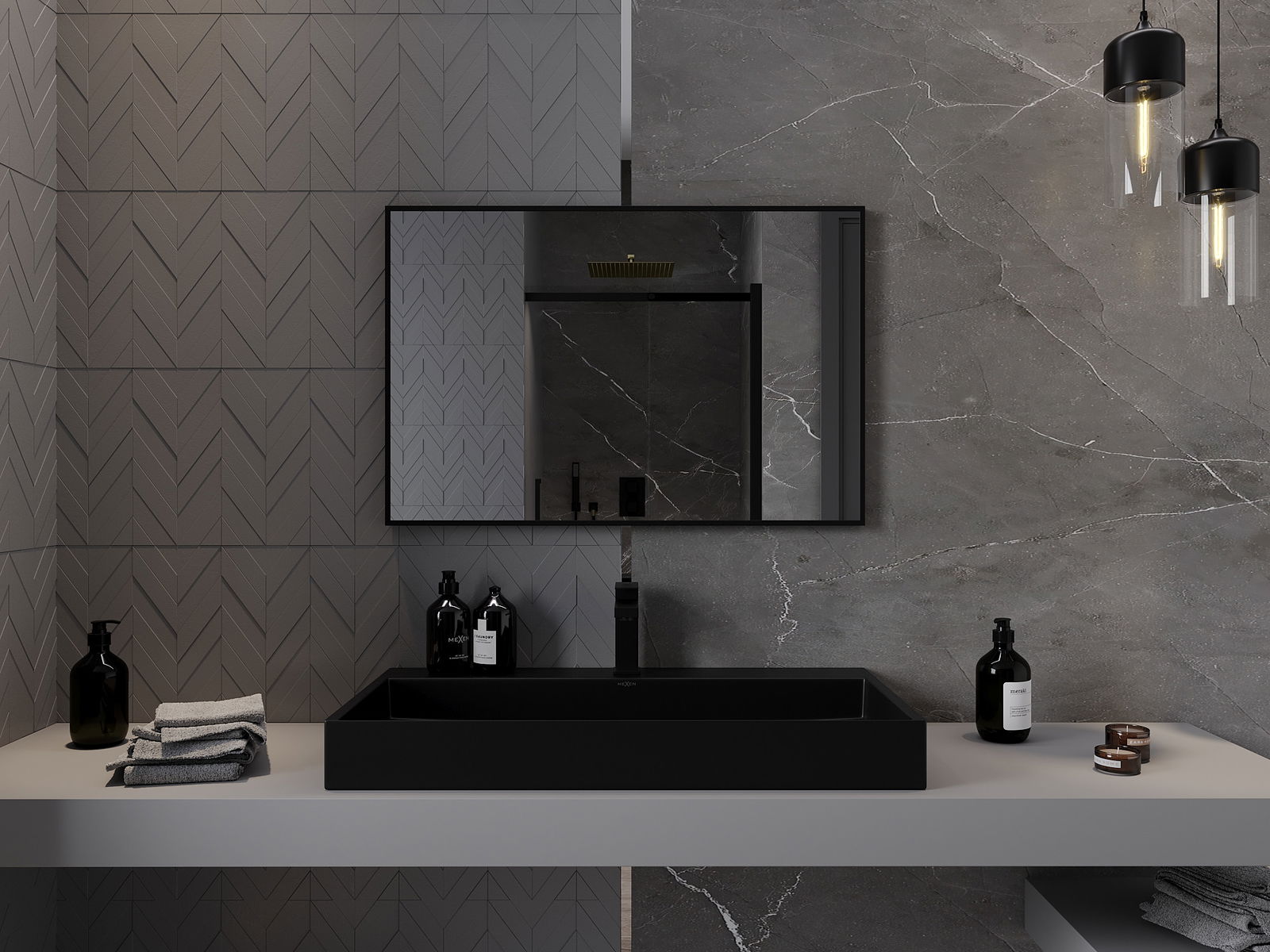 Mexen Loft правоъгълно баняно огледало 90 x 60 см, черна рамка - 9852-090-060-000-70