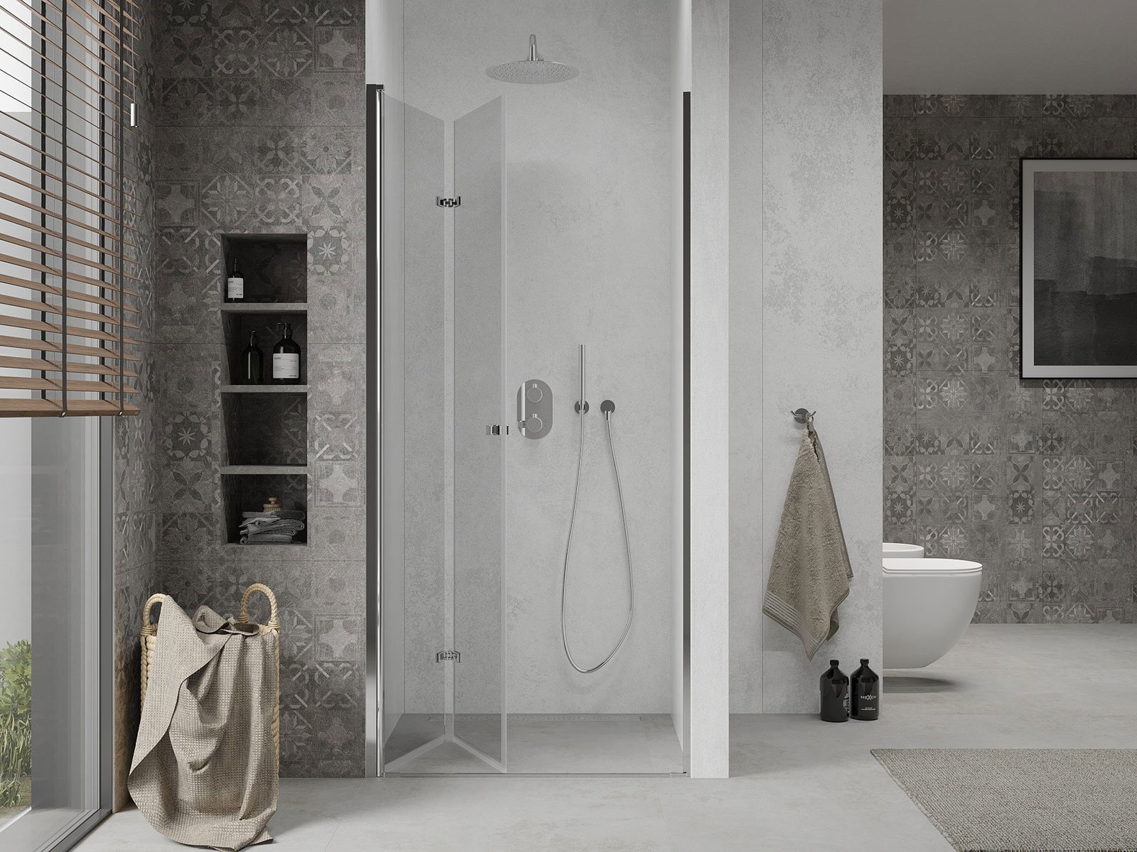 Способността да сгънете вратата, както отвън, така и отвътре, ви позволява да получите повече място, когато не използвате душа. Това е идеално решение за по -малки бани, максимално с помощта на наличната повърхност.