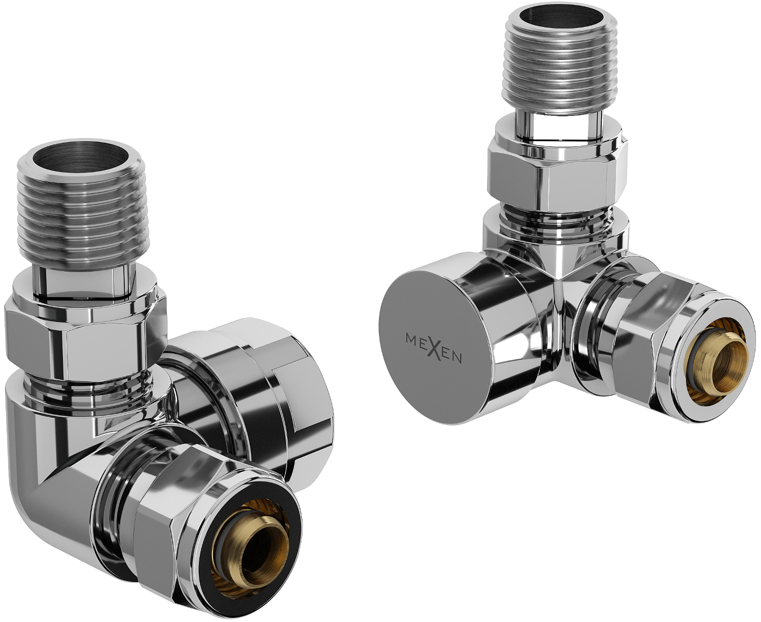 Комплектът съдържа захранващ и спирателен радиаторен вентил