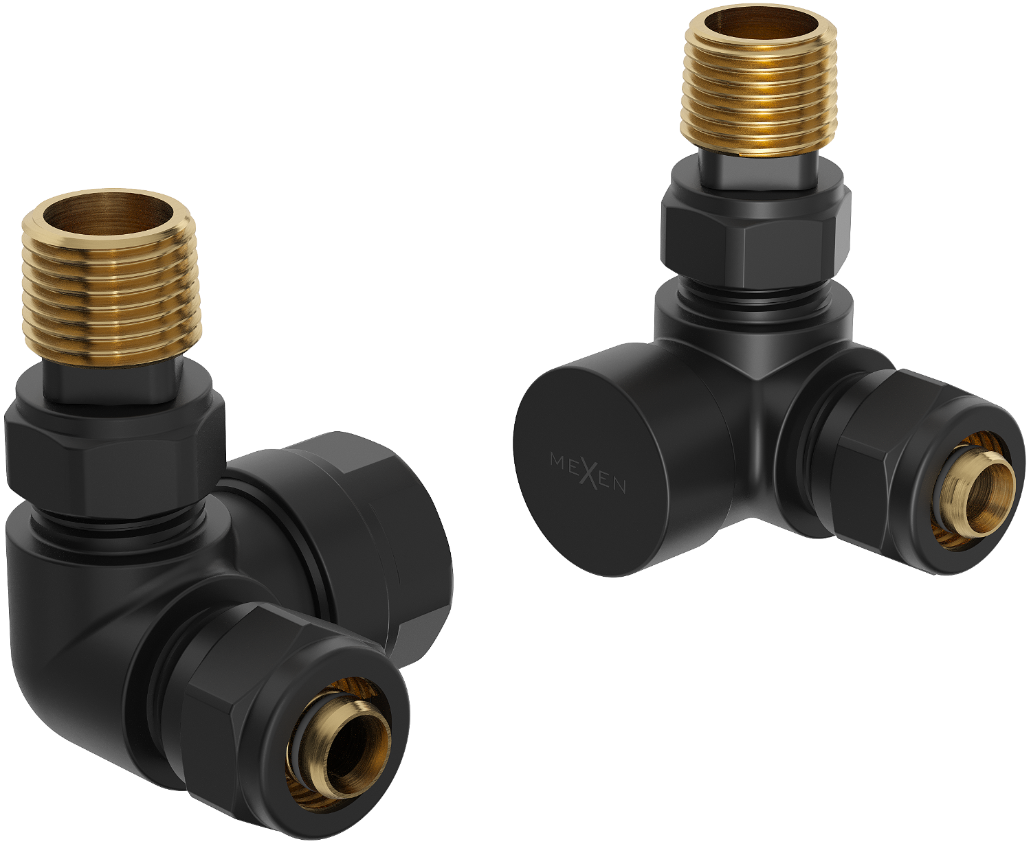 Комплектът включва захранващ и спирателен радиаторен вентил