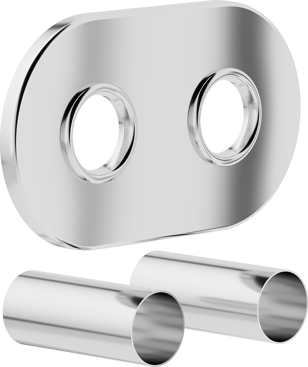Маскиращият комплект се състои от двойна розетка и две втулки, предназначени за монтаж на термостатични комплекти и радиаторни вентили