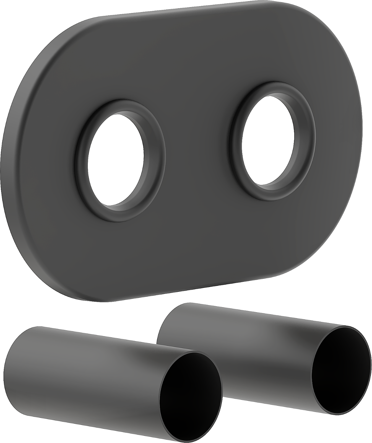 Маскиращият комплект се състои от двойна розета и две втулки, предназначени за монтаж на термостатични комплекти и радиаторни вентили