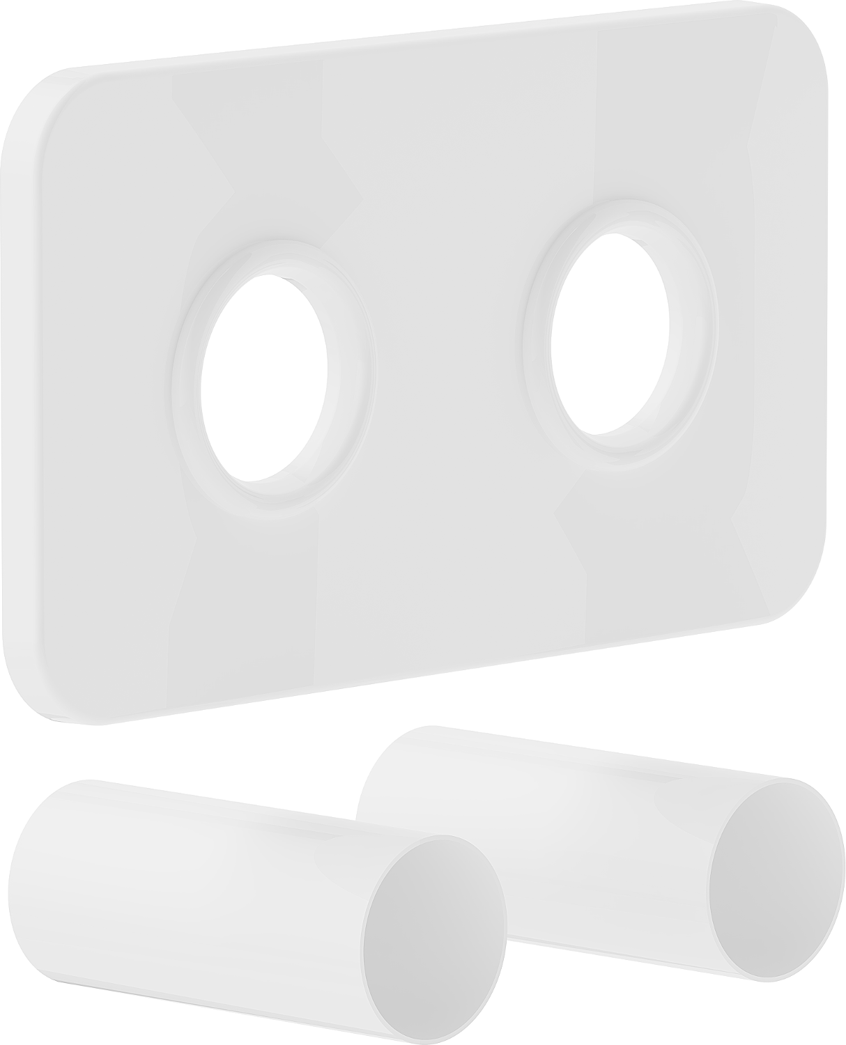 Декоративният комплект се състои от двойна розета и две втулки, предназначени за монтаж на термостатични комплекти и радиаторни вентили