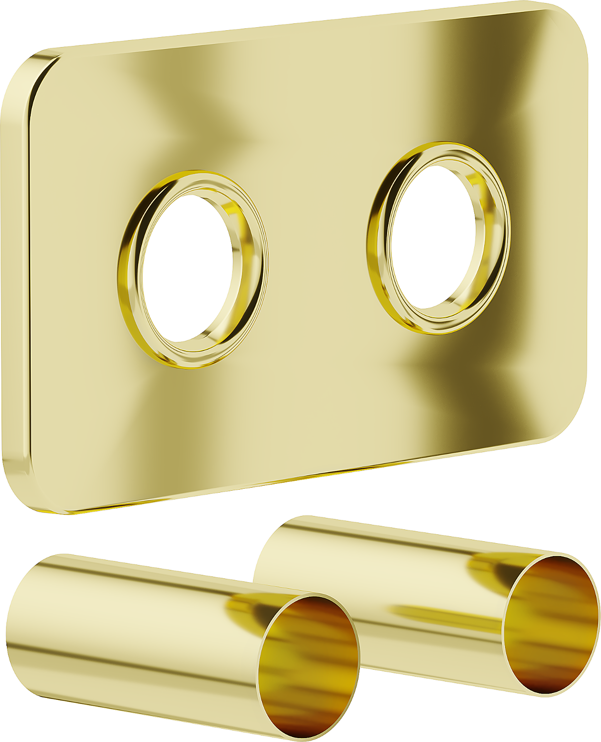Маскиращият комплект се състои от двойна розета и две втулки, предназначени за монтаж на термостатични комплекти и радиаторни вентили