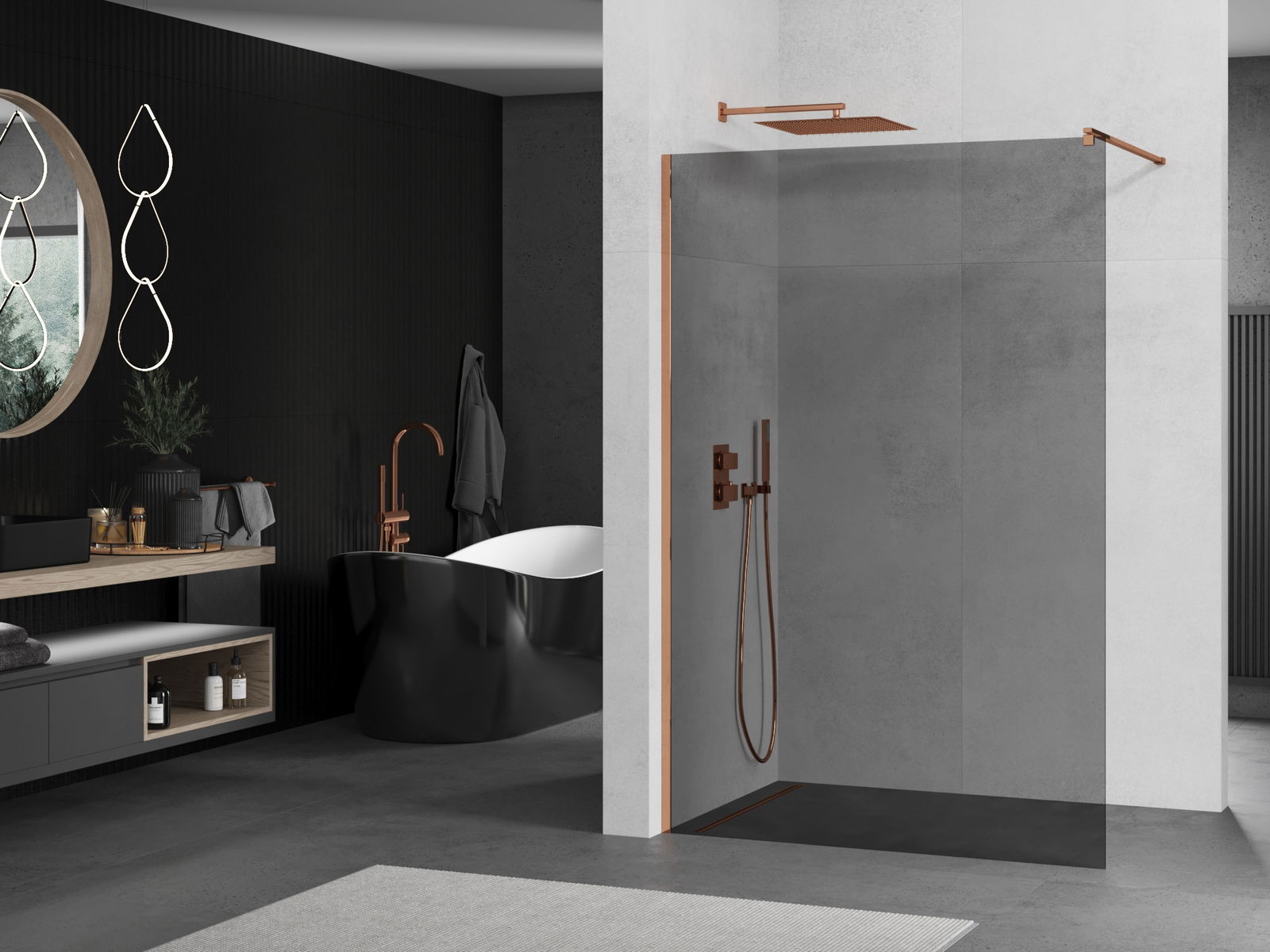 Mexen Kioto стена за душ Walk-in 110 x 200 cm, графит 8 mm, розово злато - 800-110-101-60-40