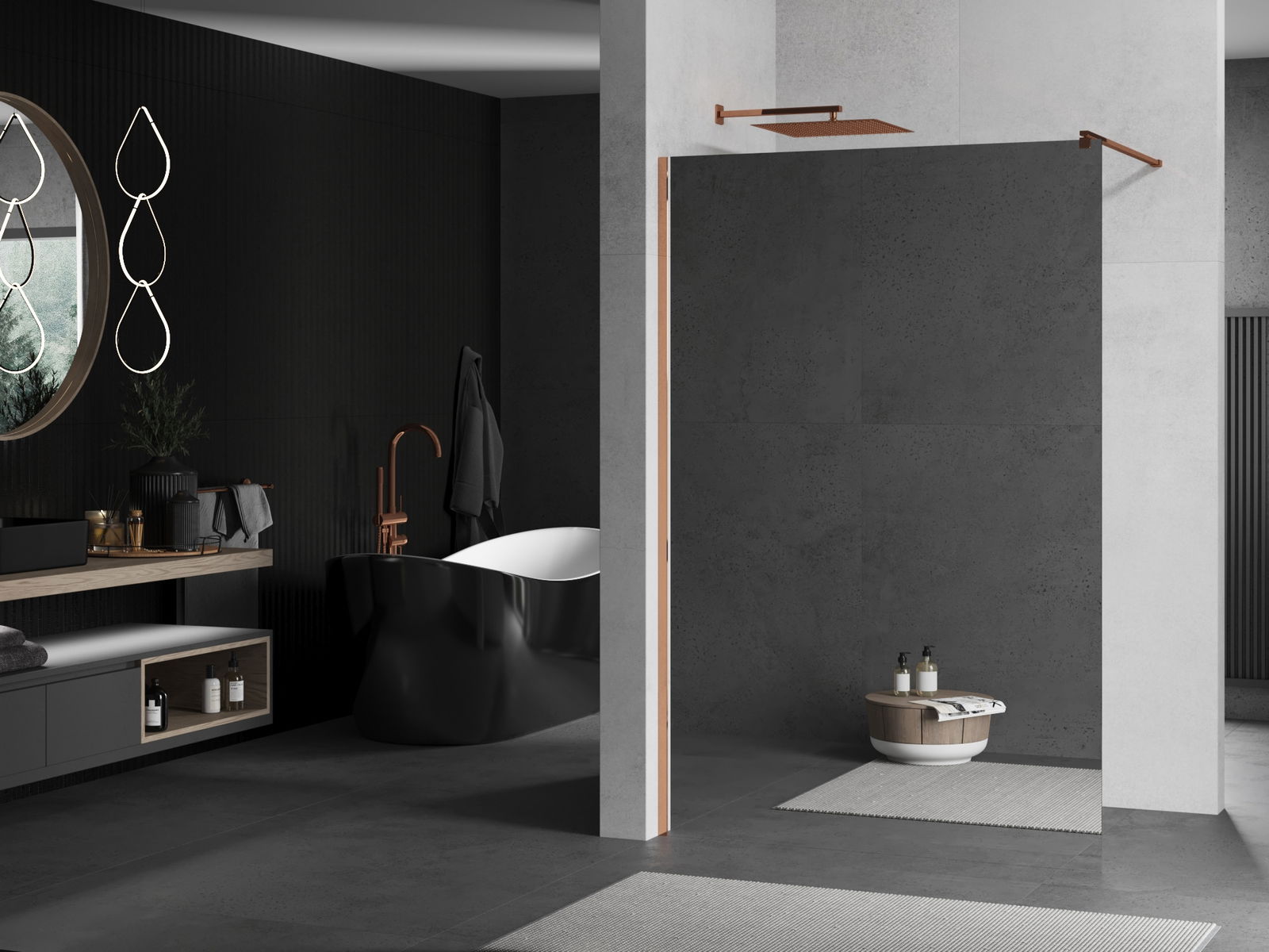 Mexen Kioto стена за душ Walk-in 100 x 200 см, огледало 8 мм, розово злато - 800-100-101-60-50