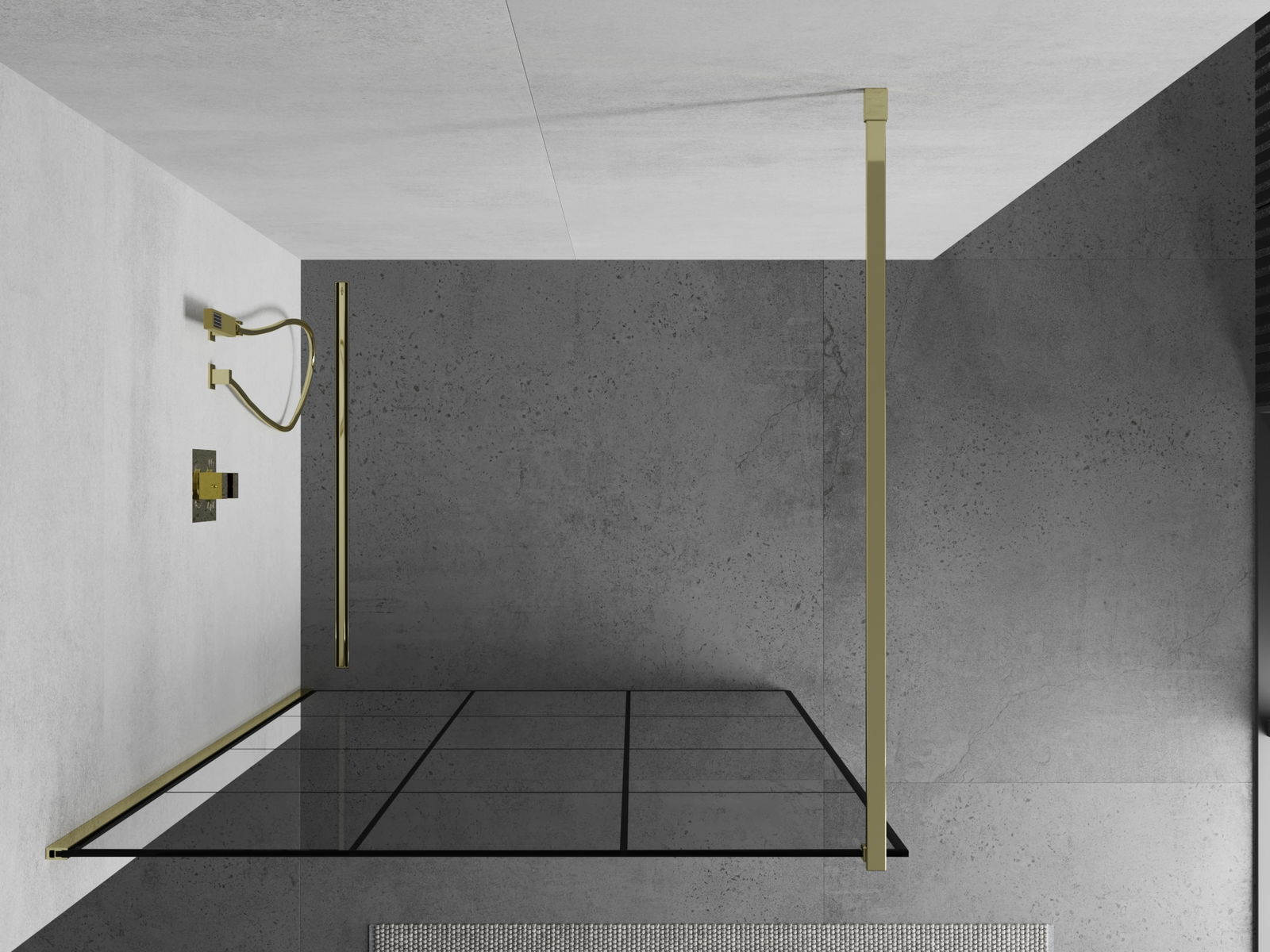 Mexen Kioto преграда за душ Walk-in 100 x 200 см, черна решетка 8 мм, златна - 800-100-101-50-77