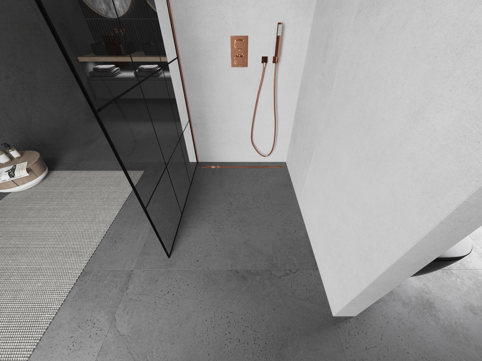 Mexen Kioto душова стена Walk-in 100 x 200 см, черна решетка 8 мм, розово злато - 800-100-101-60-77
