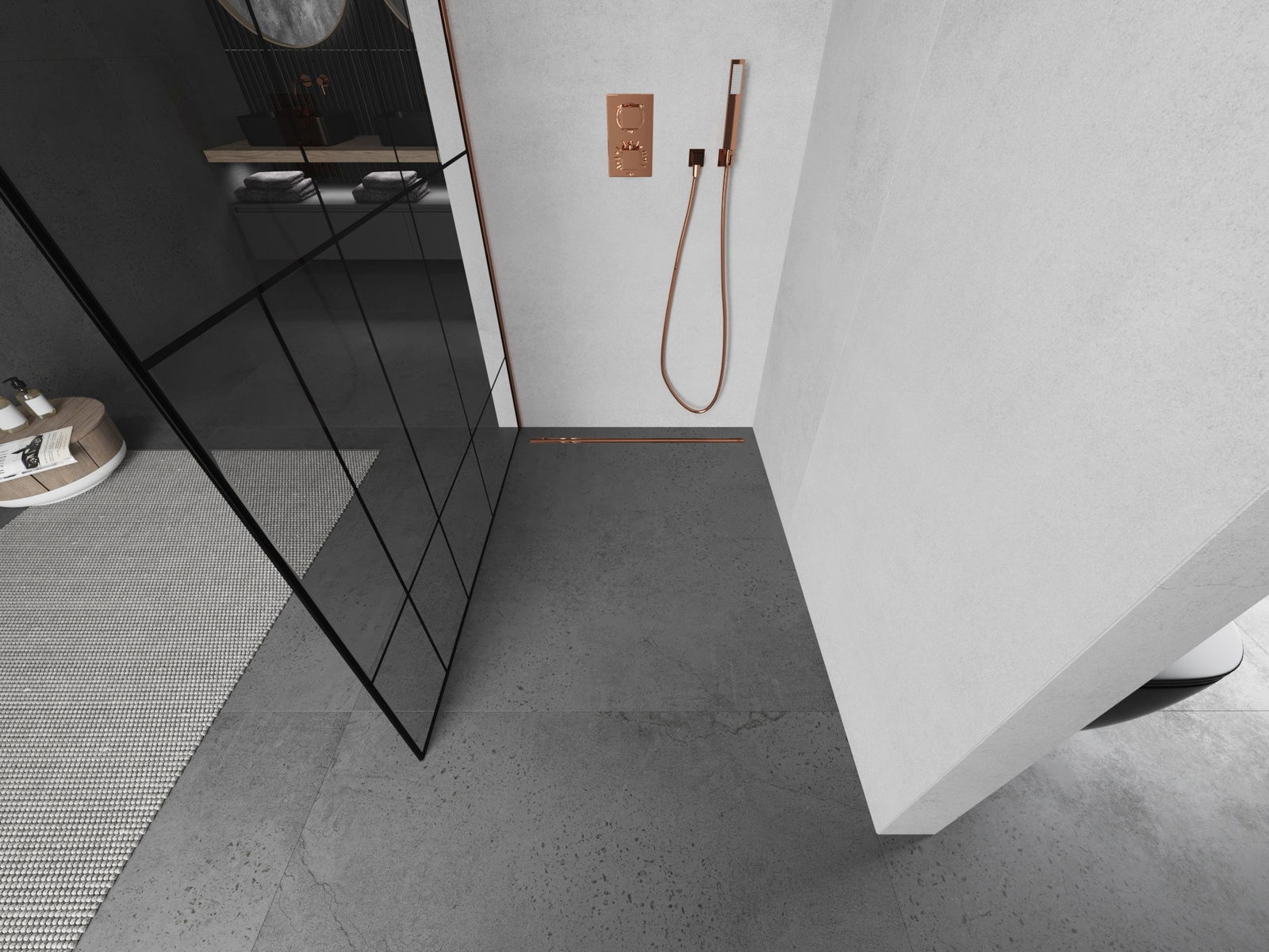 Mexen Kioto стена за душ Walk-in 120 x 200 cm, черен десен 8 mm, розово злато - 800-120-101-60-78