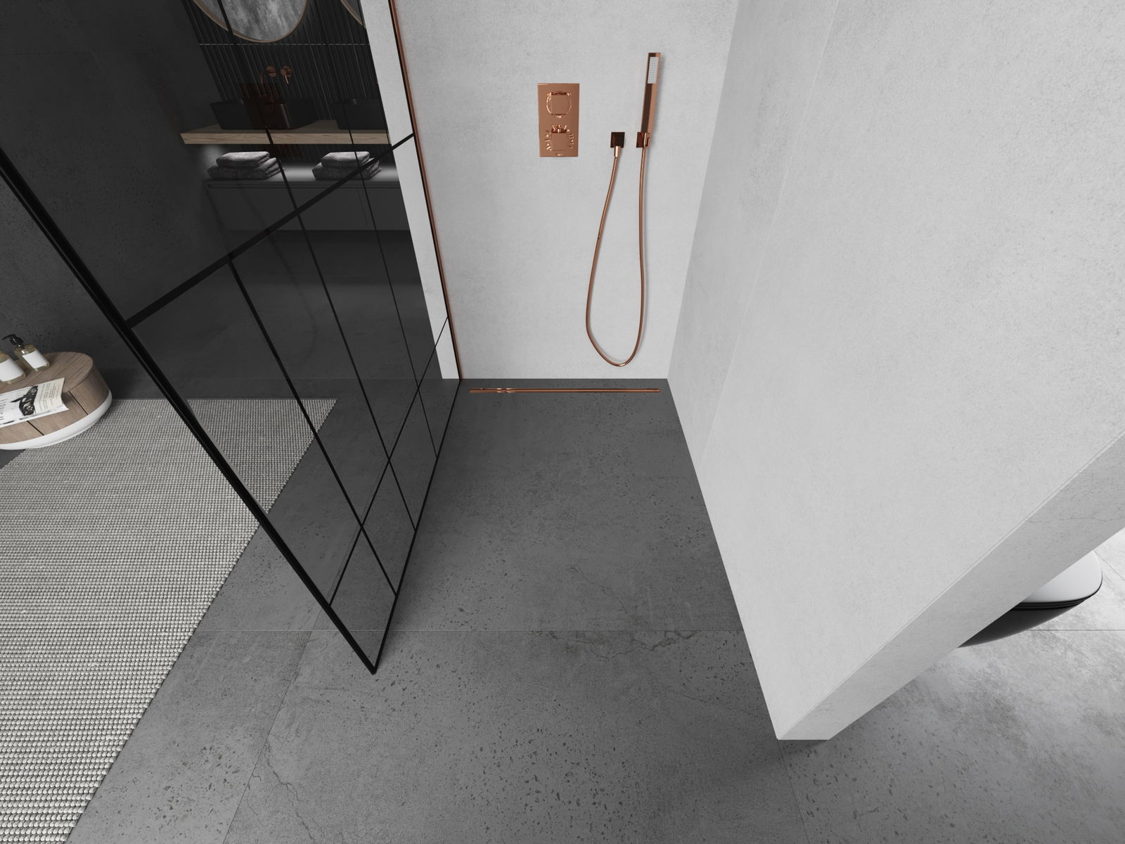 Mexen Kioto душ стена Walk-in 140 x 200 cm, черен мотив 8 мм, розово злато - 800-140-101-60-78
