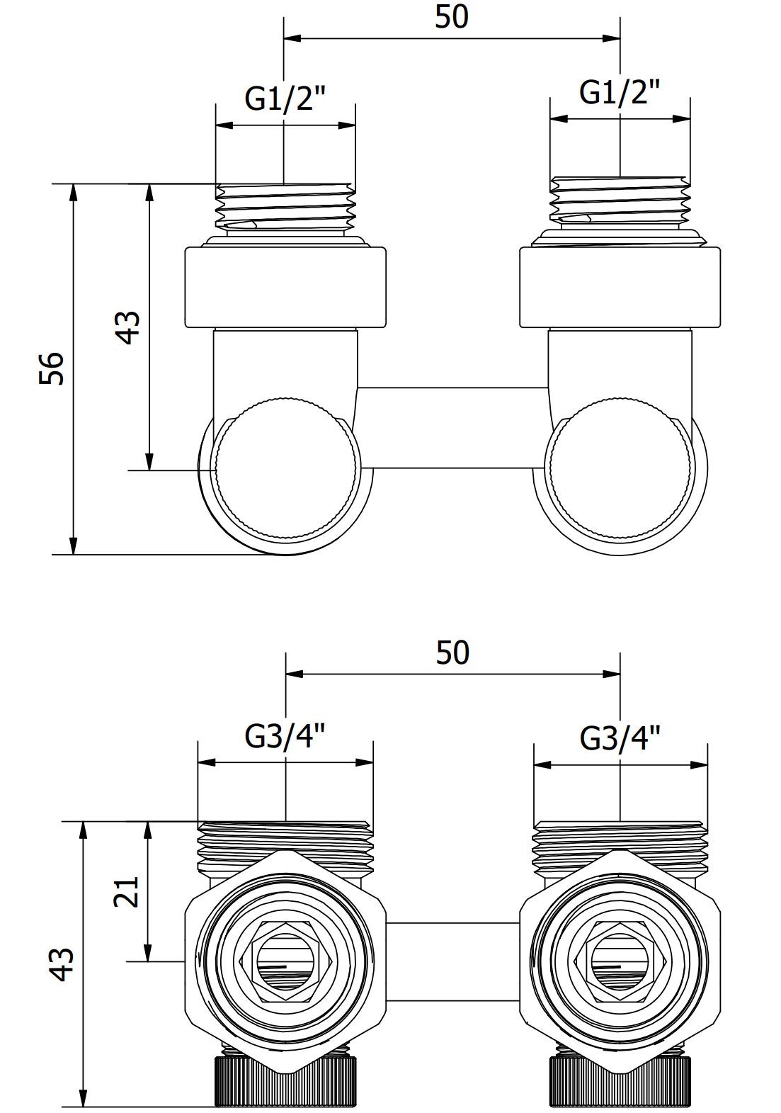 Радиаторен вентил с резбови присъединяване 1/2" и 3/4" е популярен тип вентил, използван в отоплителни инсталации. Тези резби са стандартни в много отоплителни системи и служат за свързване на радиатори към инсталации за централно отопление.
