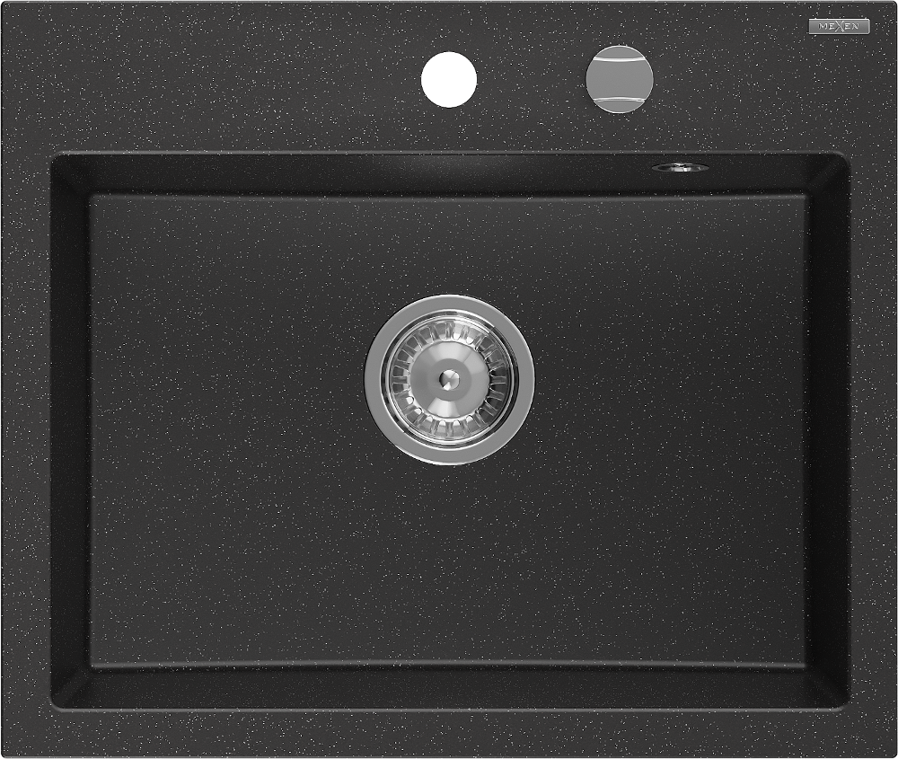 Mexen Oscar гранитна мивка с 1 камера 580 x 490 мм, черен/сребрист металик, сифон хром - 6519581000-73
