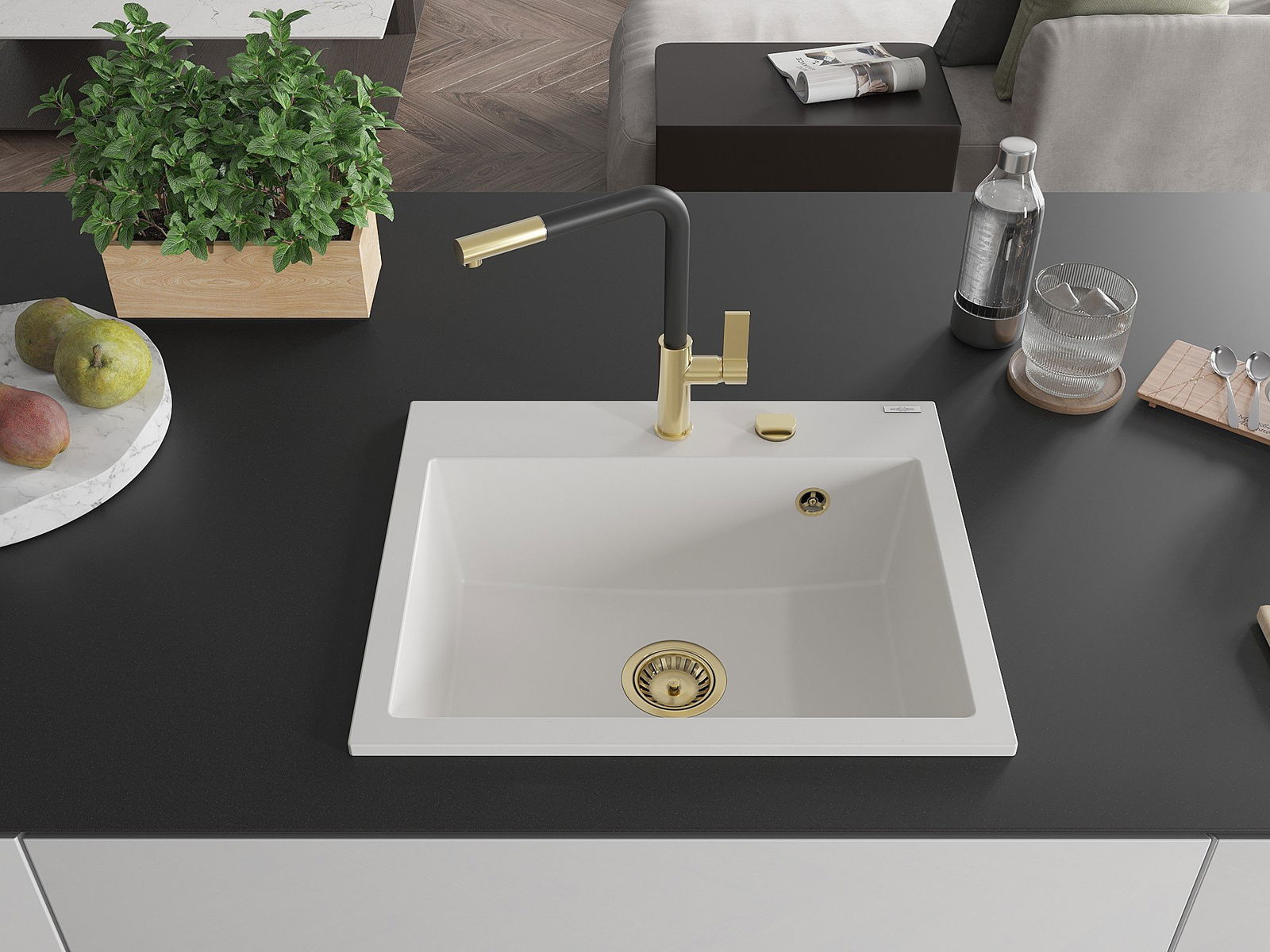 Мивката е направена от висококачествен гранит. Това е елегантно и най -вече практично допълнение към всяка кухня, независимо от нейния стил. Висококачествената и гранитна издръжливост осигуряват много години употреба.