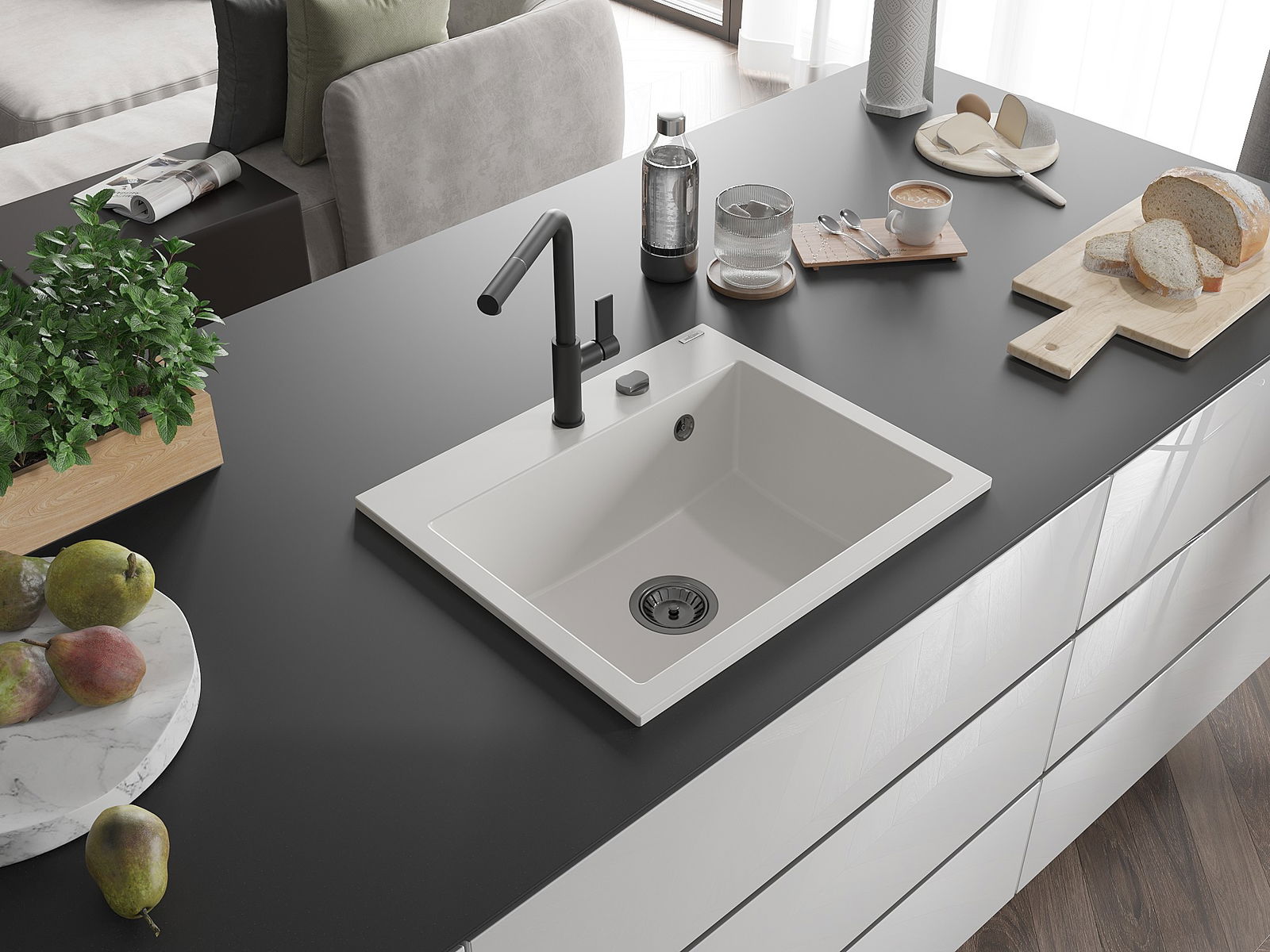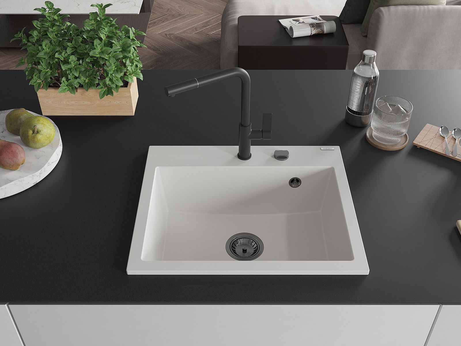 Мивката е направена от висококачествен гранит. Това е елегантно и най -вече практично допълнение към всяка кухня, независимо от нейния стил. Висококачествената и гранитна издръжливост осигуряват много години употреба.