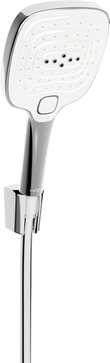 Дръжката за душ има три вида поток, променен с превключвател. Той дава пълна свобода и способността да съответства на нуждите на потребителя, предлагайки деликатен или по -силен и по -концентриран поток от вода.