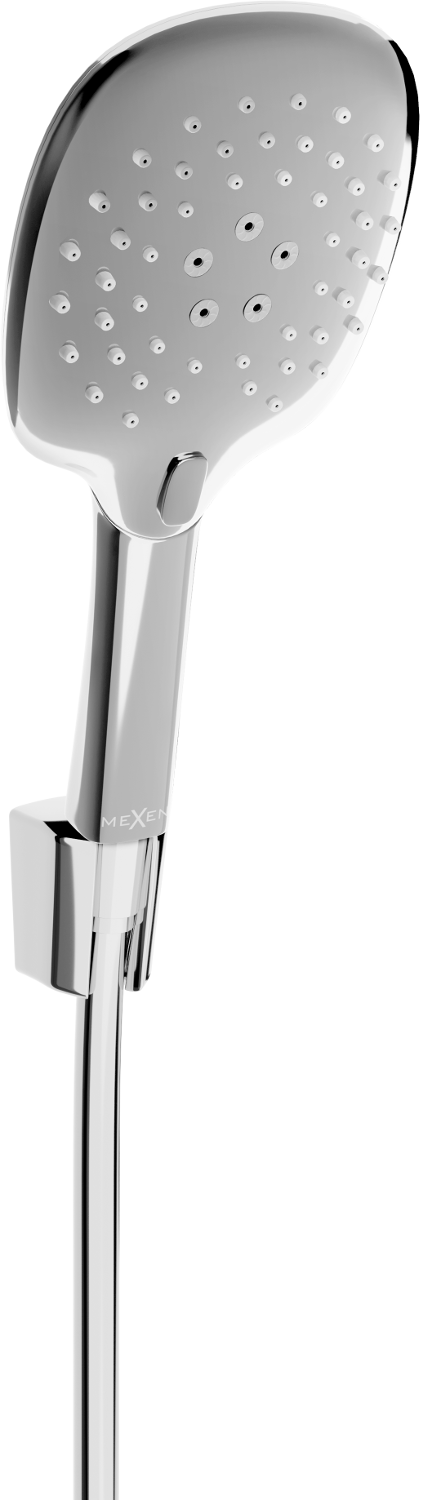 Дръжката за душ има три вида поток, променен с превключвател. Той дава пълна свобода и способността да съответства на нуждите на потребителя, предлагайки деликатен или по -силен и по -концентриран поток от вода.