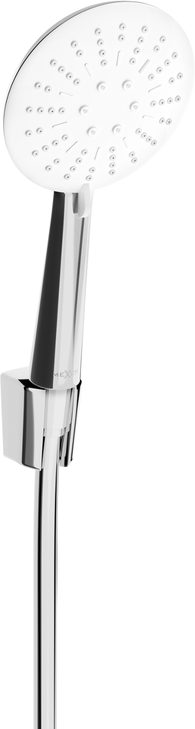 Дръжката за душ има три вида поток, променен с превключвател. Той дава пълна свобода и способността да съответства на нуждите на потребителя, предлагайки деликатен или по -силен и по -концентриран поток от вода.