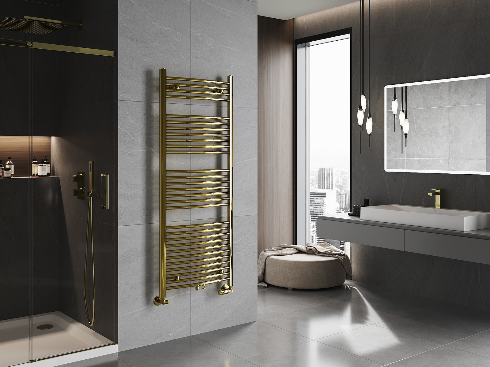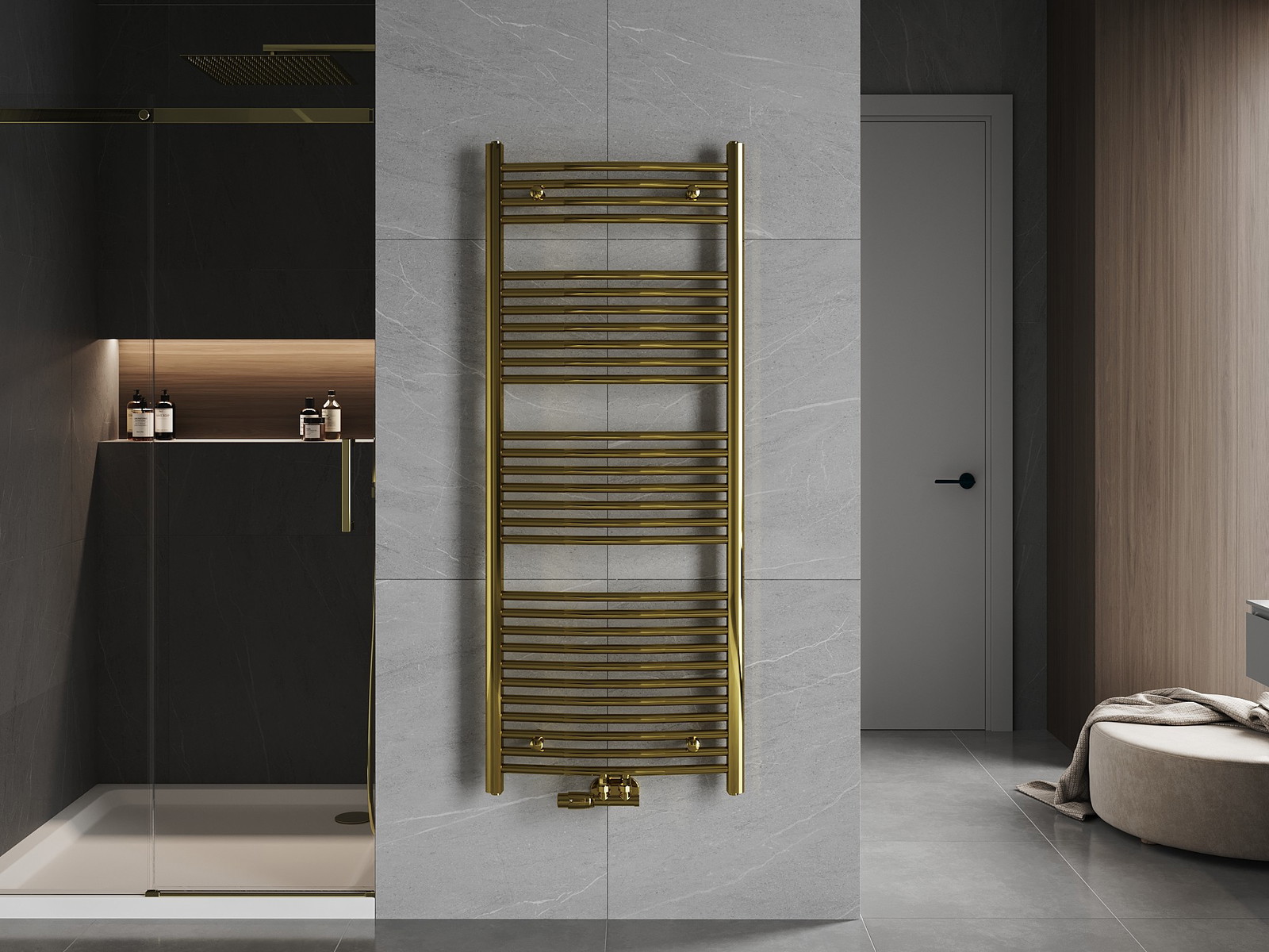 Mexen Ares е елегантен радиатор за баня с размери 1500 x 600 мм, който идеално съчетава функционалност с модерен дизайн. С мощност от 579 W бързо ще затопли всяка баня, а златистият цвят придава на интериора луксозен характер. Радиаторът е изработен от стомана, което гарантира неговата издръжливост, а покритие, устойчиво на корозия, осигурява дълготрайност на употребата. Измислената конструкция позволява различни опции за свързване и монтаж на нагревател, което значително улеснява инсталацията.