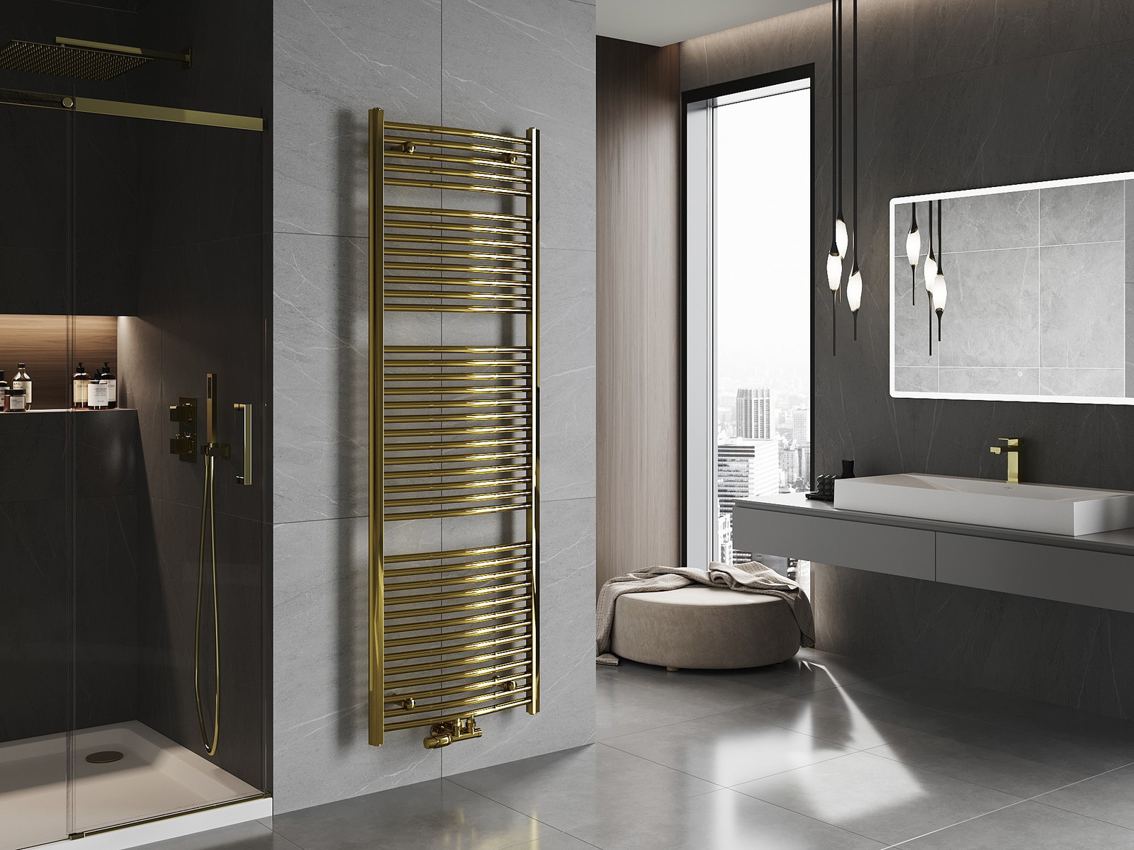 Mexen Ares е елегантен радиатор за баня в златист цвят, с впечатляваща отоплителна мощност от 757 W, който отлично се вписва в съвременните интериори. Размерите му са 1800 x 600 mm, което го прави идеален за изпълнение на функциите си, без да заема прекалено много място. Изработен от стомана, с висококачествено лаково покритие устойчиво на корозия, осигурява дълговечността на продукта. Благодарение на възможността за долно или централно свързване и лесен монтаж с комплект аксесоари, използването и инсталацията са изключително прости. Работни температури до 95 °C и максимално работно налягане 0,6 MPa гарантират надеждна ефективност. Има възможност за монтаж на нагревател, което увеличава функционалността му.