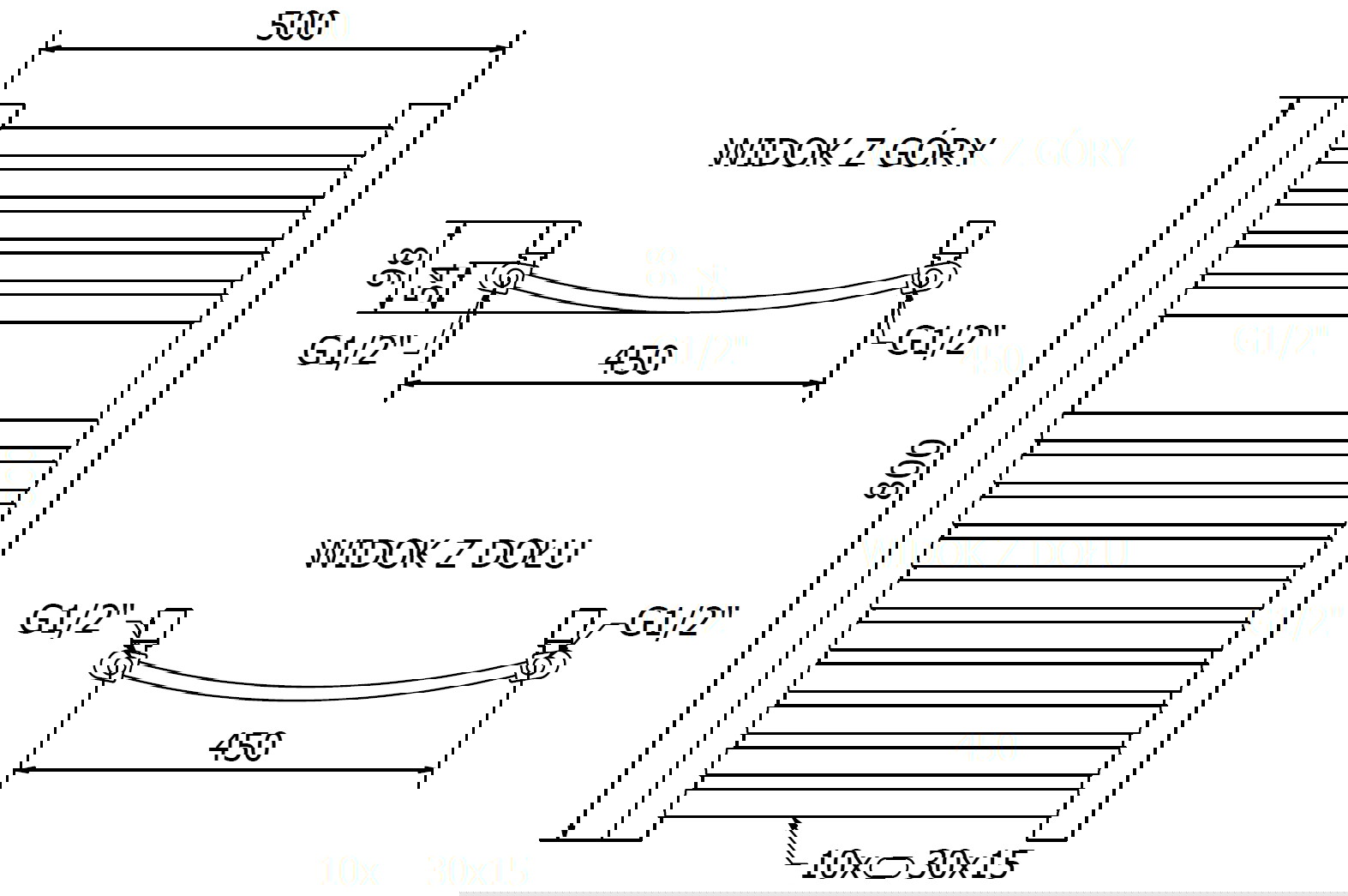 - 4xG ½″ отгоре и отдолу, отдясно или отляво
