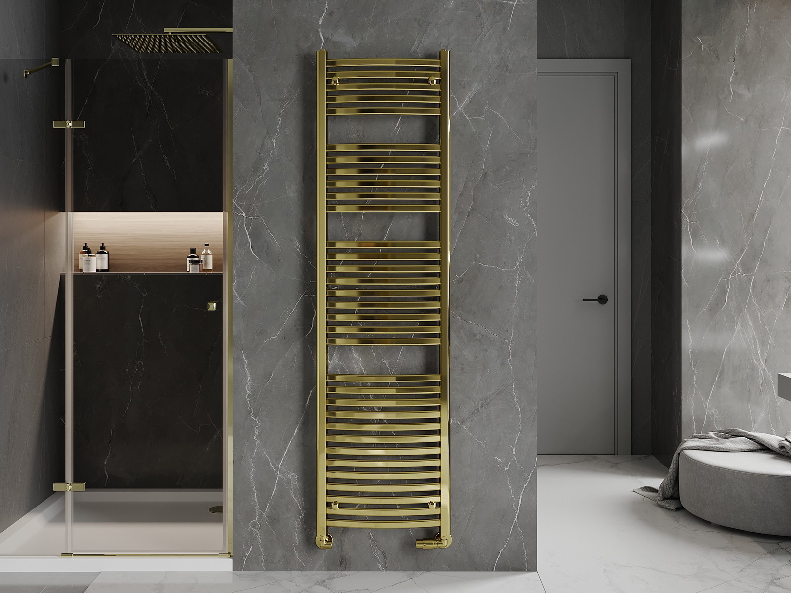 Mexen Helios е елегантен радиатор за баня в златен цвят, който съчетава стил и функционалност. Височината от 1800 мм и широчината от 500 мм го правят идеален за модерни интериори. Изработен от трайна стомана, осигурява високо качество и устойчивост на корозия. Отоплителната мощност от 667 W при работна температура до 95 °C осигурява ефективно отопление на помещението. Продуктът е устойчив на огън в клас A1. В комплекта са включени окачвания и монтажен комплект, което улеснява монтажа. Идеален избор за взискателни потребители.