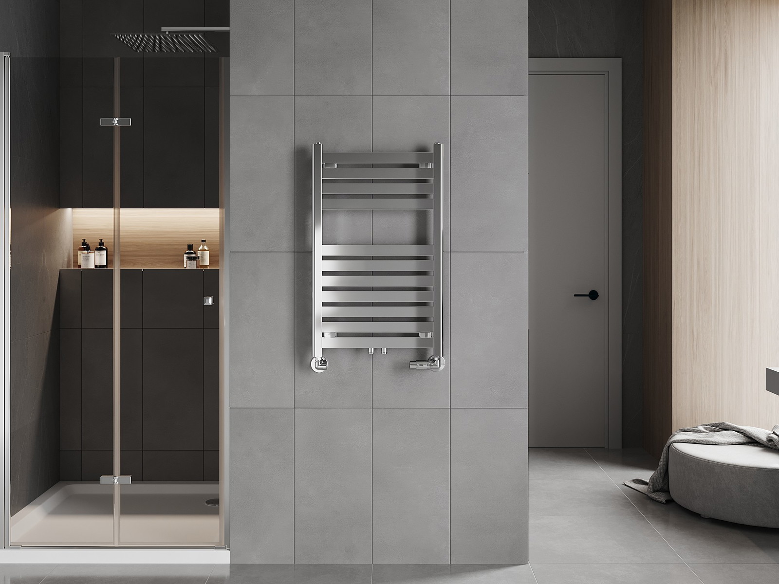 Mexen Uran е модерен хавлиен радиатор, който благодарение на размерите си 800 x 500 mm и отоплителната мощност от 287 W, е перфектен за всяка баня. Изработен от стомана, покрит с висококачествено лаково покритие, устойчиво на корозия, което гарантира дълготрайна здравина и елегантен вид в хромов цвят. Лесен за монтаж благодарение на различни възможности за свързване - долно или средно, и позволява инсталация на нагревател. Благодарение на реакцията на огън A1 и възможността за работа при висока температура до 95 °C, това е надеждно решение за вашата баня.