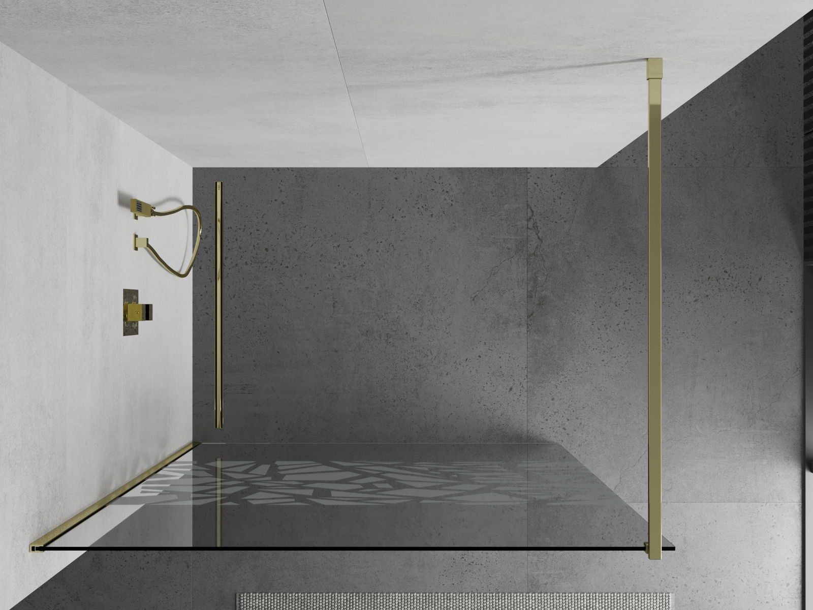 Mexen Kioto душ кабина Walk-in 90 x 200 cm, бял мотив 8 mm, златна - 800-090-101-50-85