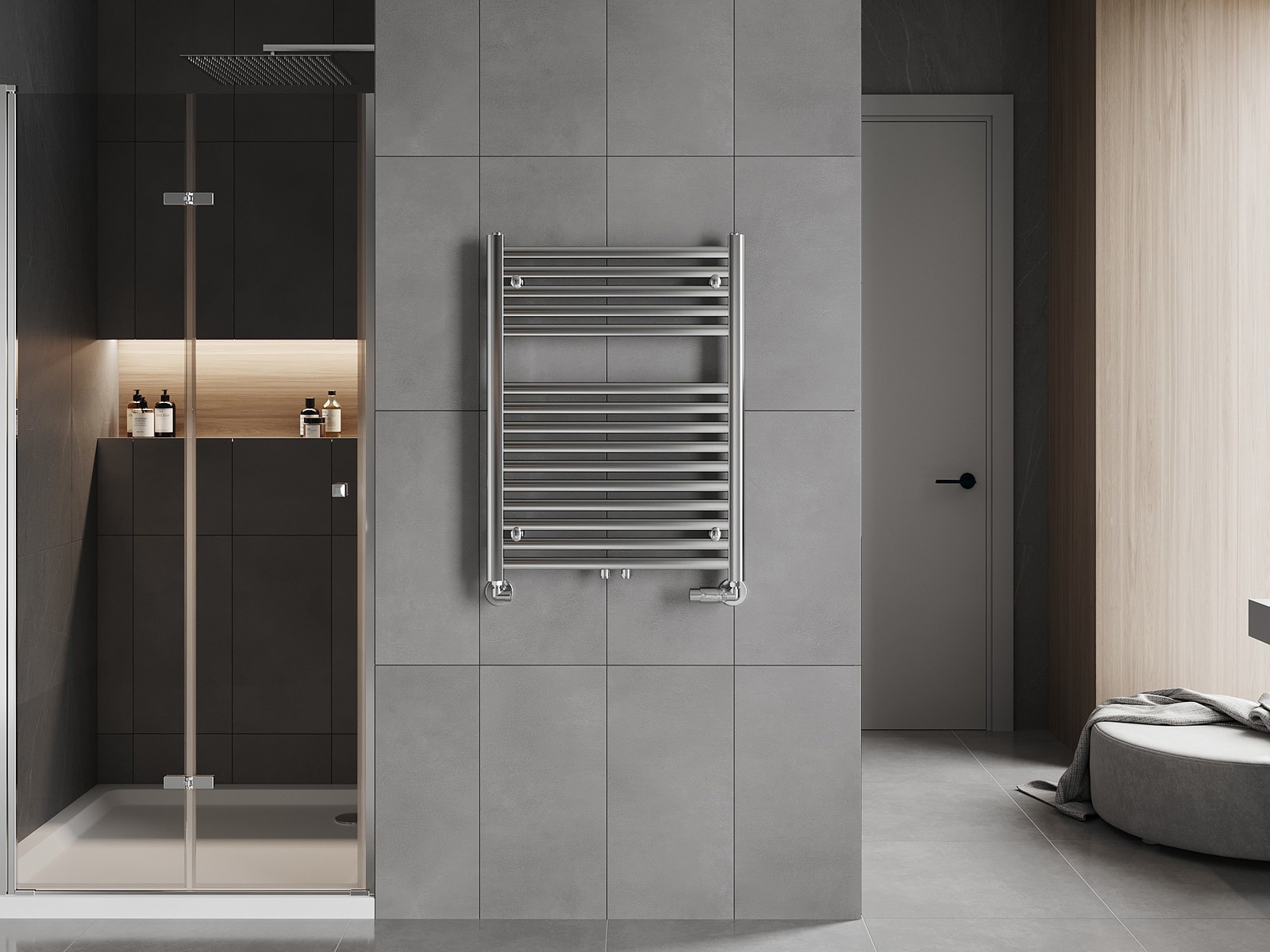 Mexen Hades е модерен баня радиатор, който отлично съчетава функционалност с естетика. Размерите му 800 x 600 мм и мощност 357 W осигуряват ефективно отопление при същевременно запазване на елегантен вид благодарение на хромираното покритие. Изработен от висококачествена стомана, отличава се с устойчивост на корозия и трайност на лаковото покритие. Радиаторът предлага гъвкави монтажни възможности със свързвания на различни височини, а реакцията му на огън го класифицира като A1. Допълнително, възможността за монтаж на нагревател увеличава функционалността му.