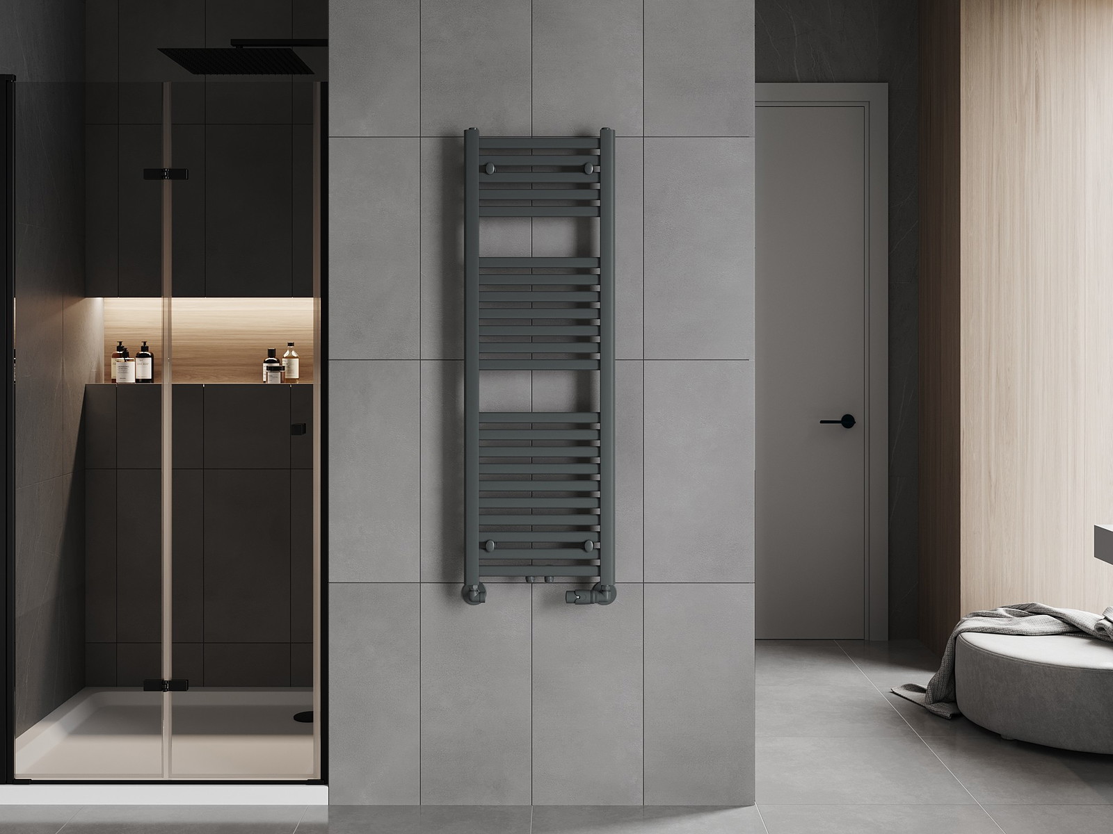 Mexen Hades е функционален и стилен радиатор за баня с размери 1200 x 400 мм и мощност 472 W. Изработен от висококачествена стомана, в антрацитен цвят (RAL 7016), подходящ за съвременни интериори. Има устойчивост на корозия, благодарение на здравото покритие. Осигурява гъвкави възможности за свързване: долно 35 cm или средно 5 cm. Характеризира се с максимално работно налягане 0,6 Mpa и работна температура до 95 °C. Комплектът включва окачвания, монтажен комплект и допълнителни елементи. Независимо от компактните размери (височина 800 мм, широчина 400 мм, дълбочина 30 мм) тежи само 7,38 кг.