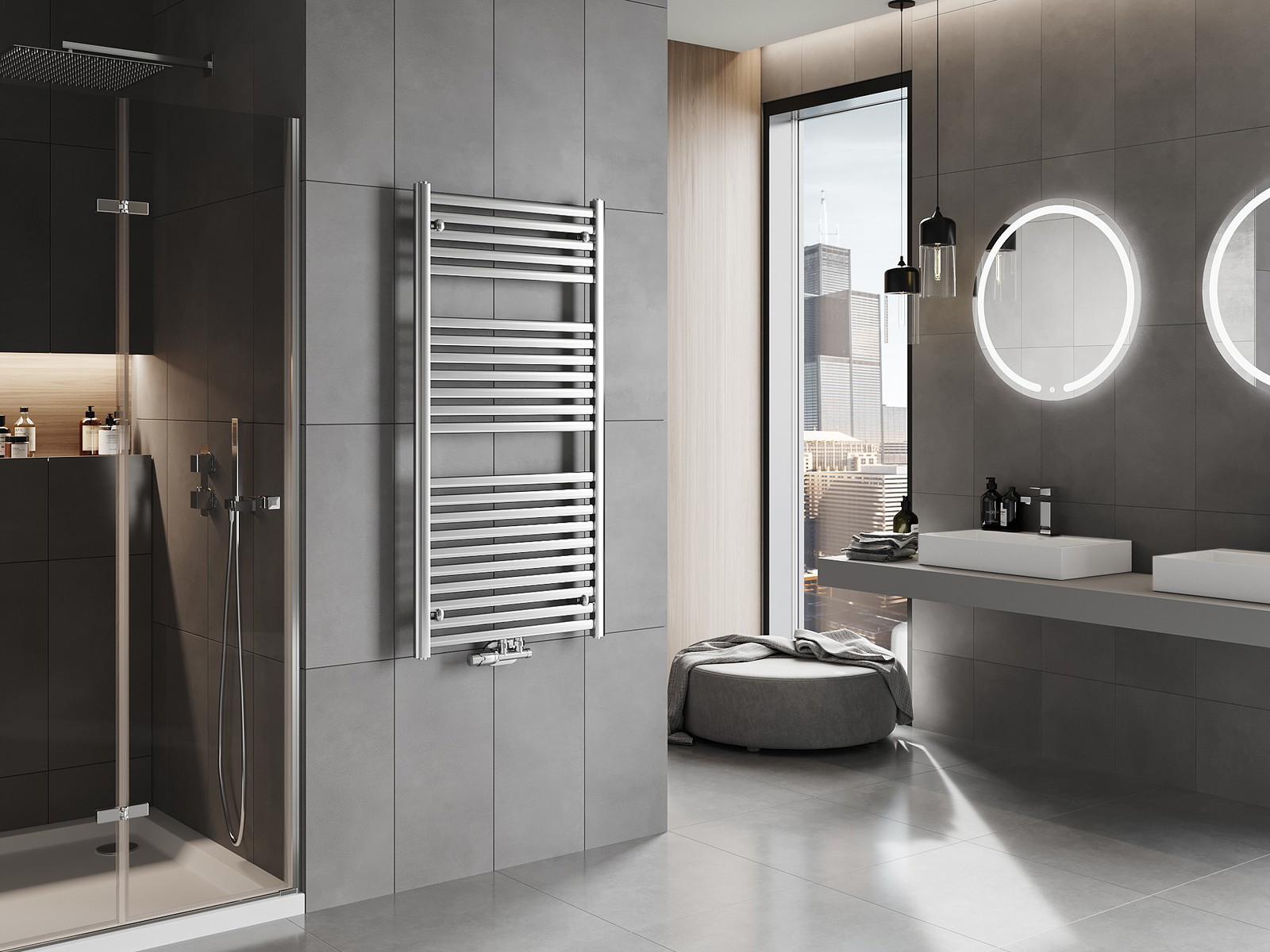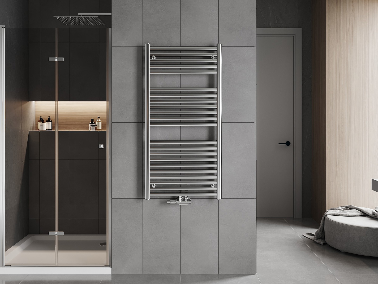 Баня радиатор Mexen Hades с размери 1200 x 600 мм е отлично съчетание между модерен дизайн и висока ефективност. Изработен от хромирана стомана, предлага отоплителна мощност 527 W при температура 75/65/20 °C и максимална работна температура до 95 °C. Продуктът е оборудван с различни свързвания, които позволяват гъвкаво свързване, както и висококачествено покритие, устойчиво на корозия. Комплектът включва закрепвания, монтажен комплект, капачки и вентилационен отвор.