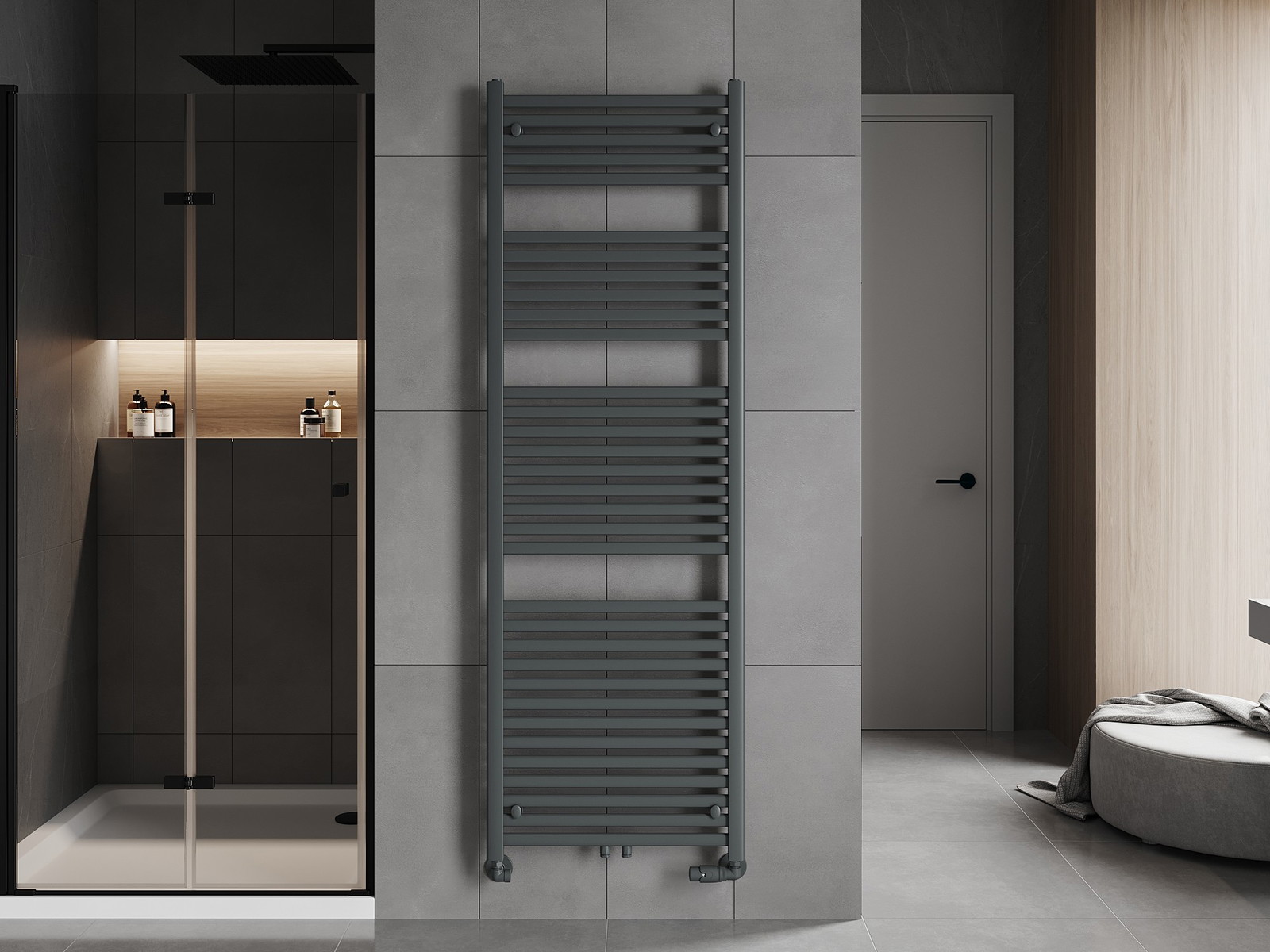 Mexen Hades е елегантен баня радиатор с размери 1800 x 600 мм, идеален за всяко интериор. Мощността от 1000 W осигурява бързо загряване, а антрацитният цвят RAL 7016 придава модерен стил. Изработен от здрава стомана, е устойчив на корозия благодарение на трайното лаково покритие. Възможността за различни разстояния на връзки (долно 55 см или средно 5 см) и монтаж на нагревател увеличава неговата функционалност. В комплекта се съдържат окачвания, монтажен комплект, запушалки и вентилатор.