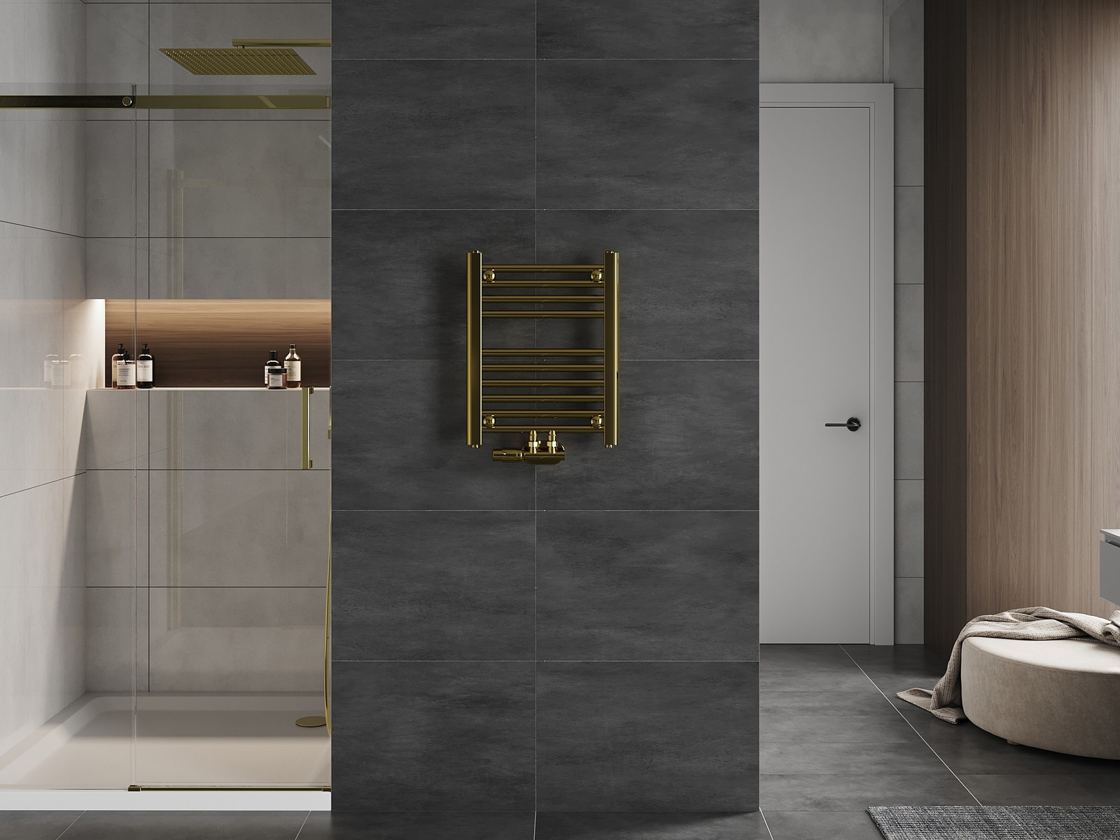 Mexen Mars е стилен радиатор за баня с размери 500 x 400 мм и мощност 141 W, който се отличава с елегантен златист цвят и здрава стоманена конструкция. Благодарение на компактните си размери, той идеално се вписва в банята. Има възможност за долно и средно свързване, което го прави универсално решение за всяка баня. Устойчивото покритие осигурява защита от корозия, а комплектът включва необходимите аксесоари за монтаж и обезвъздушител. Класът на реакция на огън A1 увеличава безопасността при използване.