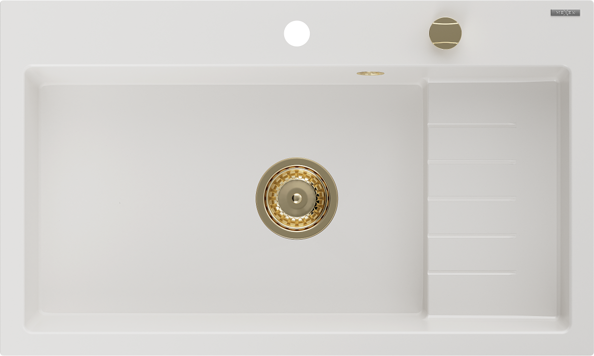 Мивката разполага с предварително издълбан отвор с диаметър 35 мм за самостоятелно изключване. Може да се използва, наред с други неща, за монтаж на дозатор за течност, който ще елиминира наличието на пластмасови бутилки в кухнята и ще й придаде елегантно завършване.