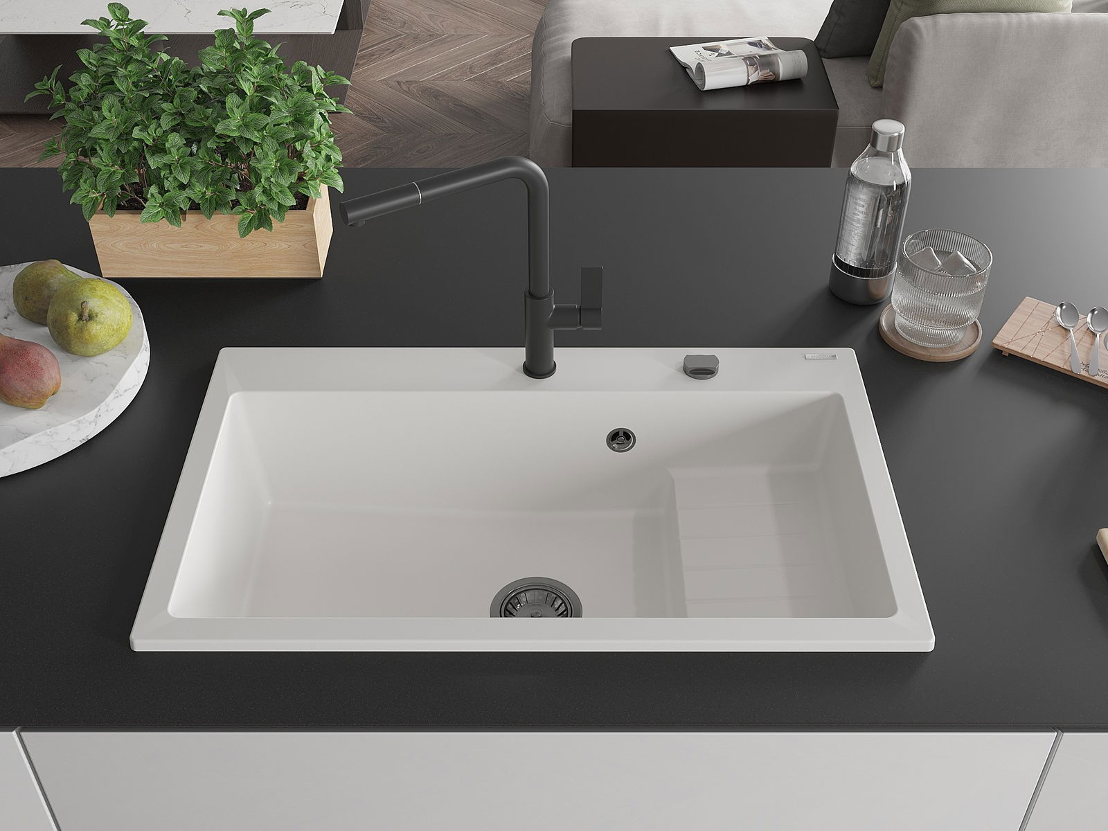 Повърхността на мивката е устойчива на петна и оцветявания, благодарение на което е лесна за поддържане на чистота и запазва цвета си за дълго време на употреба. Естетично и практично допълнение към всяка кухня.