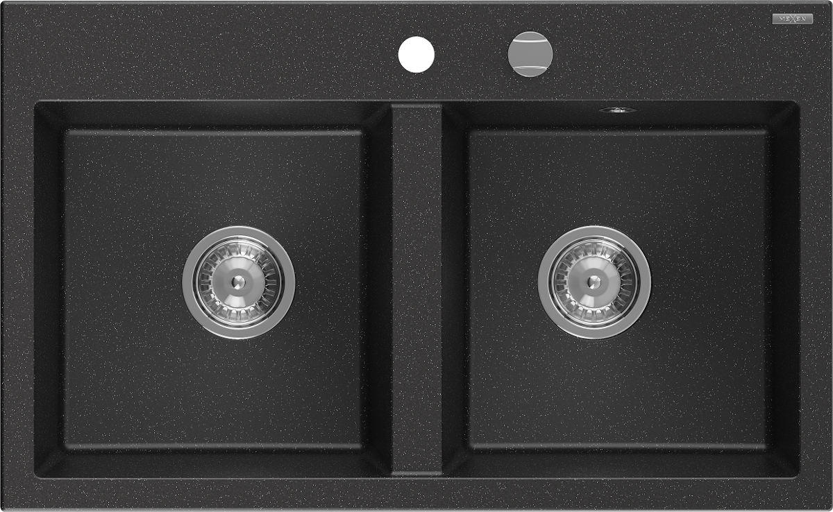 Mexen Hektor кухненска мивка от гранит, 2-компонентна 800 x 480 mm, черен/сребърен металик, хром сифон - 6521802000-73