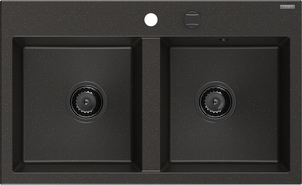 Mexen Hektor двоен кухненски гранитен мивка 800 x 480 мм, черен/златен металик, сифон черен - 6521802000-75-B