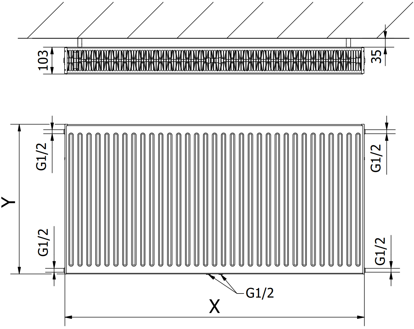 Снимките показват радиатора с размер 600 x 1200 мм.