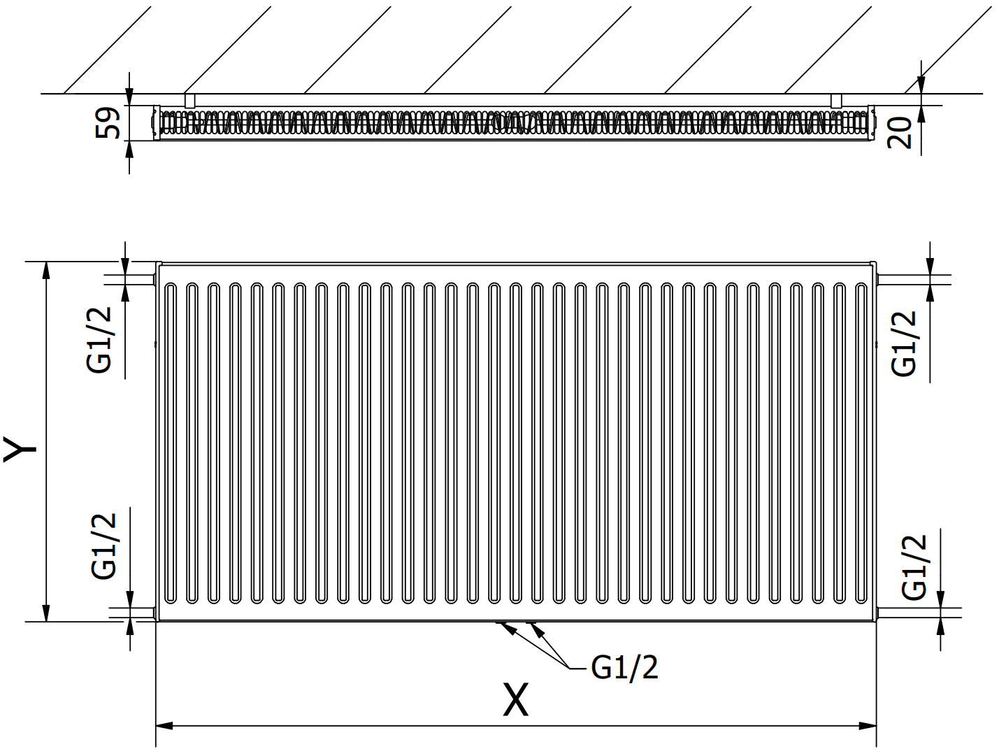 Снимките показват радиатор в размер 600 x 1200 мм.