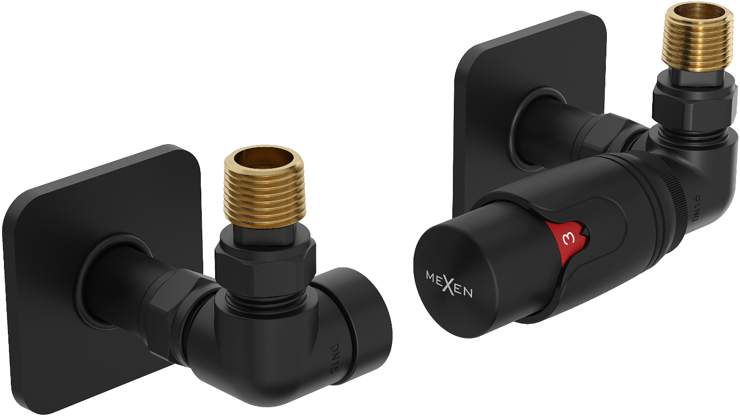 Комплектът включва захранващ и изключващ радиаторен клапан