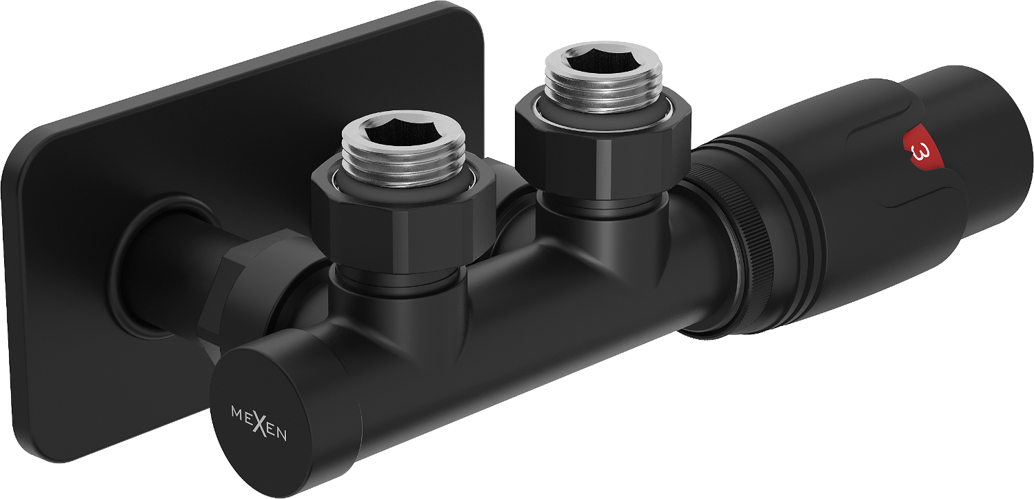 Mexen G00 комплект термостатичен ъглов с декоративен елемент S, Duplex, DN50, черен предлага изключително качество благодарение на здрава изработка от месинг. Неговият елегантен, антрацитен цвят отговаря на модерен интериор. Клапанът има диаметър на присъединяване G 1/2" и максимална работна температура 120°C и налягане до 10 bar. Долното присъединяване и възможността за регулиране на температурата от 0 до 29°C осигуряват универсалност. Защитата от замръзване и възможността за свързване на главата от двете страни увеличават функционалността.
