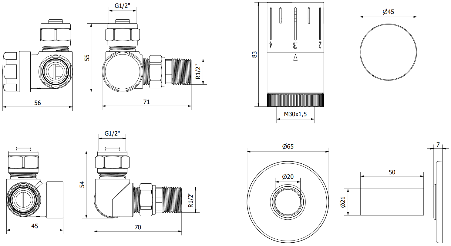 Глава с 5-степенна скала за регулиране на температурата, в диапазона от 0-29 °C позволява прецизен контрол на температурата. Това е функция, която позволява на потребителя да настрои температурата в помещението, което се отразява на топлинния комфорт и икономия на енергия.